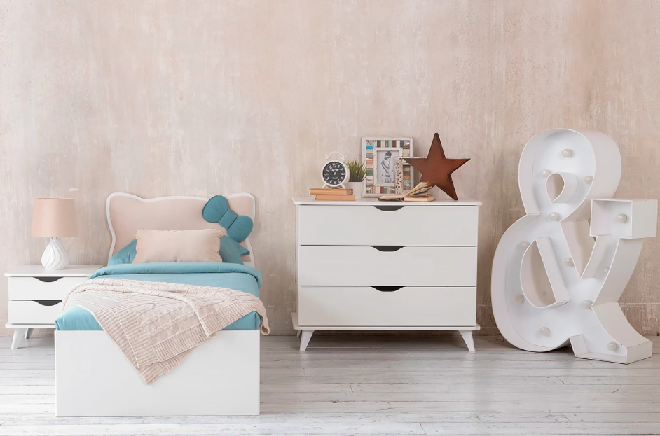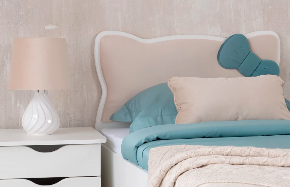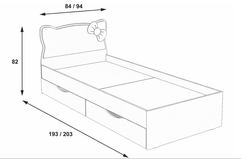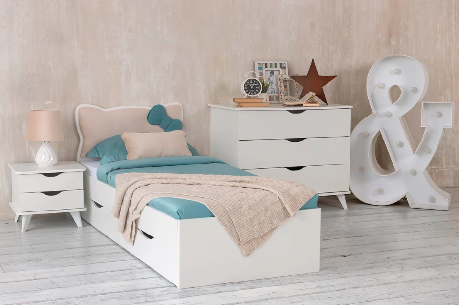Корпусная кровать Vicky – с оригинальным фигурным изголовьем, создаст в детской атмосферу радости и гостеприимства. Мягкая накладка добавит уюта, а цветной бант – праздничного настроения.