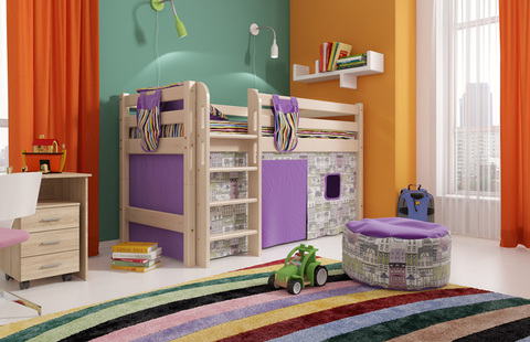 Это дает возможность сделать кровати более эргономичными и нежными. Толщина щита позволяет скруглить все углы таким образом, чтобы минимизировать последствия любого удара об элементы кровати. Продольные бортики не напоминают частокол и не возбуждают психику ребенка. Этому же способствует цветовая гамма кроватей "Соня"