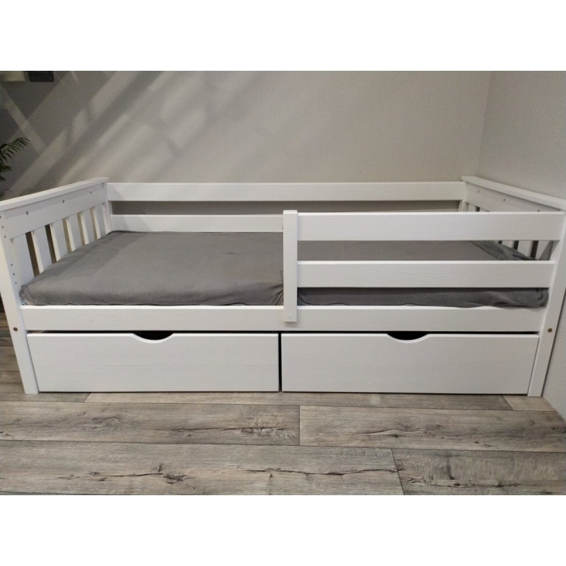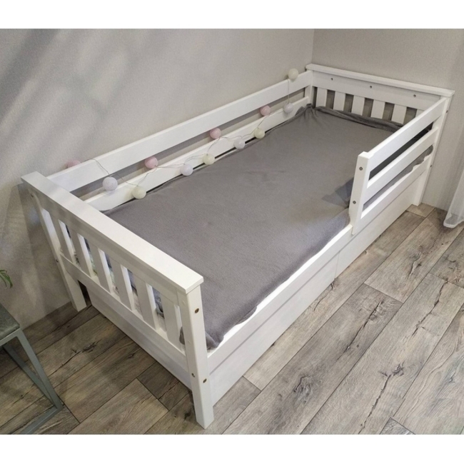 Детская односпальная кровать с бортиком и ящиками «Луна» (белая)