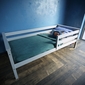Кровать выполнена из массива сосны и окрашена абсолютно безопасной краской на водной основе, так что вы можете быть спокойны за безопасность вашего ребенка.