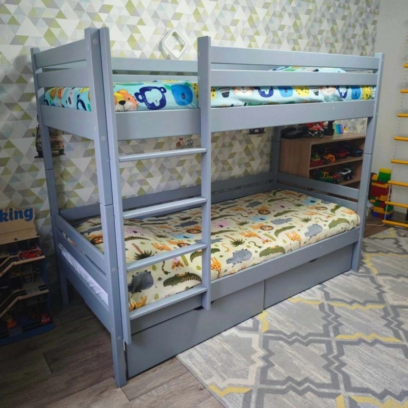 Детская (подростковая) двухъярусная кровать «Rostik» 2в1 (серая) без нижнего бортика и ящиков