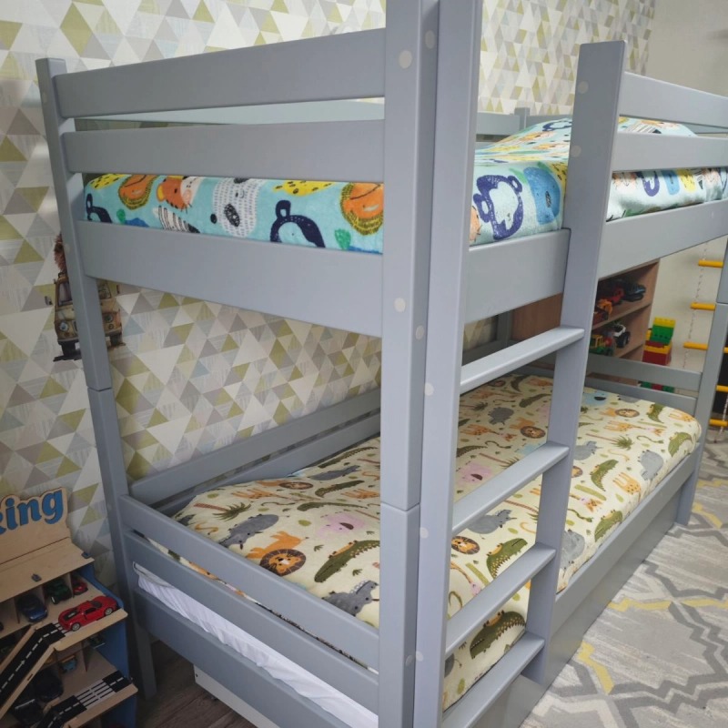 Этапы покраски: шлифовка, предварительная грунтовка, шлифовка грунта, покрытие эмалью! Используются специализированные экологичные и безопасные материалы для детской мебели!
