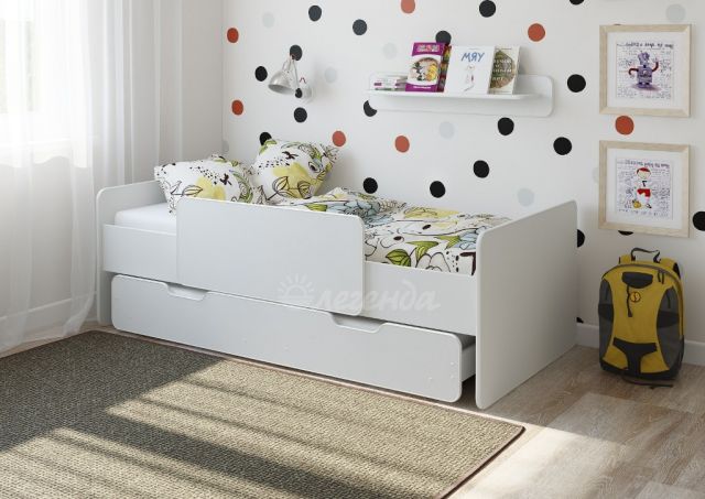 - Борт по центру кровати не даёт спящему ребенку упасть и в то же время остаётся место по бокам, чтобы слезть и залезть на кроватку.