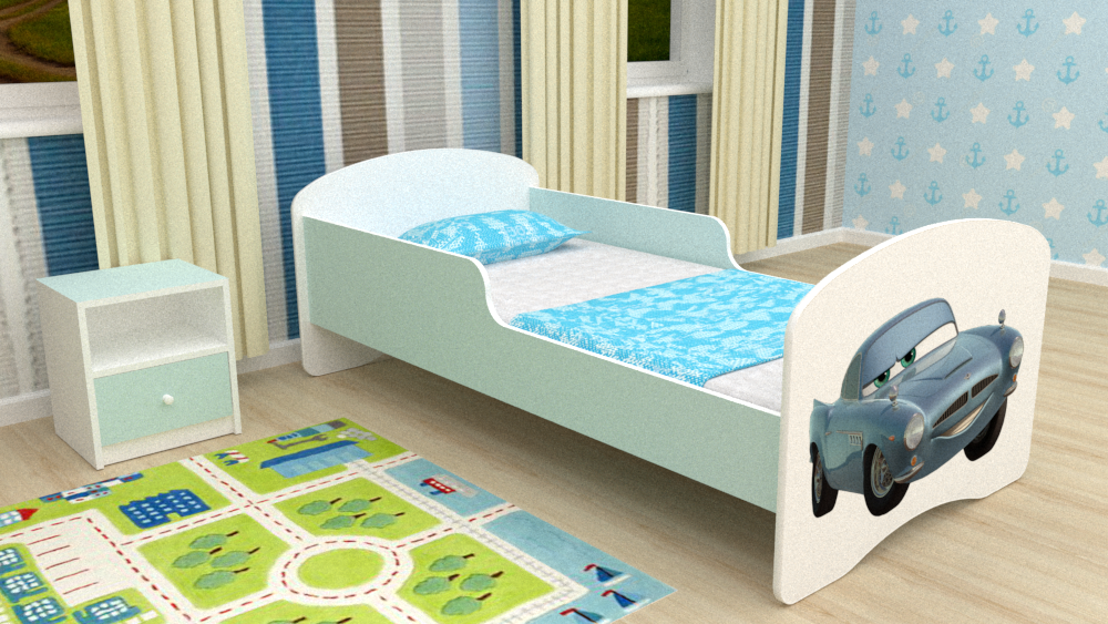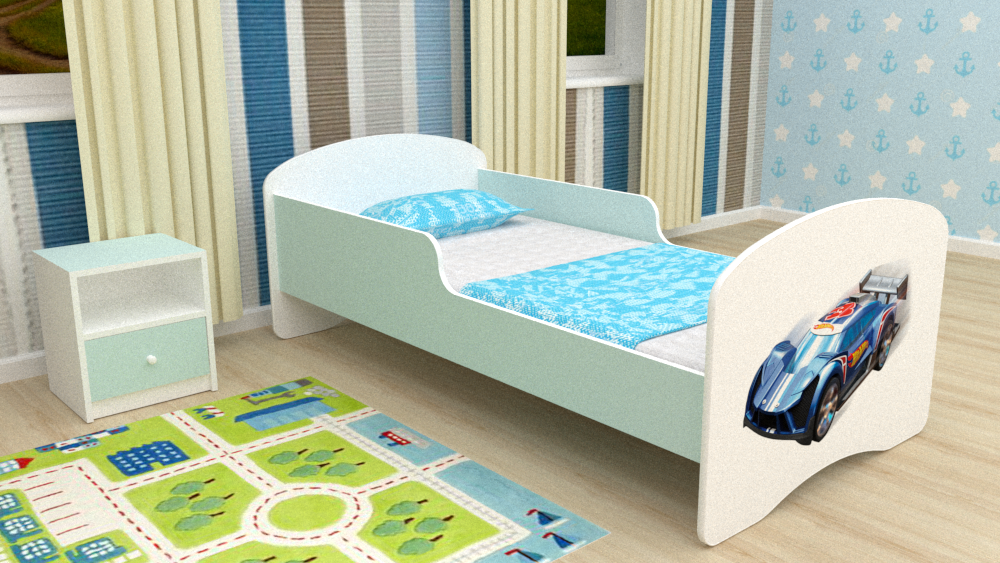 Кровать-машинка Турбо Фея со встроенным матрасом и подъемным механизмом