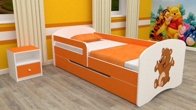 код 104261Кровать из ЛДСП в бело-оранжевом оформлении. Кроноспан толщиной 18 мм.