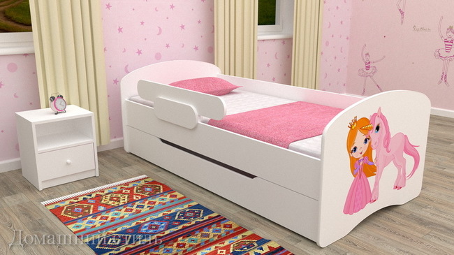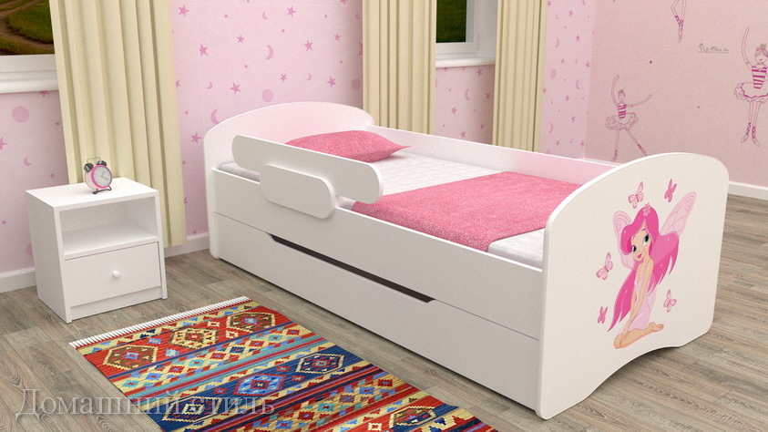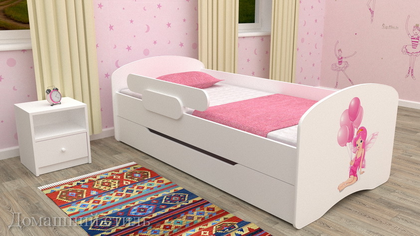 код 103568Модель кроватки для девочки. Реечное основание, ящик для белья, бортики.