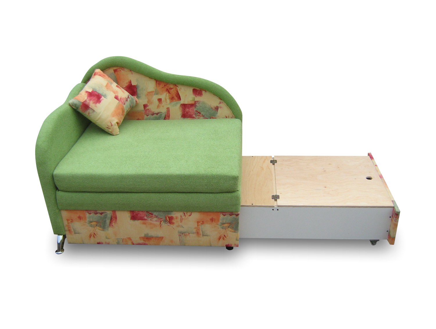 Оснащен удобным механизмом раскладки и ящиком для белья.