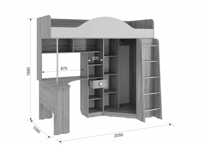 Размер (ШхВхГ): 2040х1880х1110 мм. Материал: ЛДСП, МДФ.