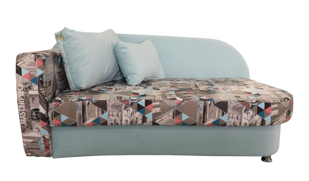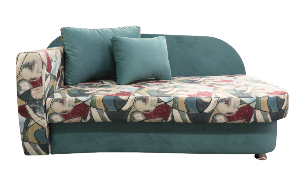 Удобный мягкий диван с механизмом раскладки в красочной обивке.
