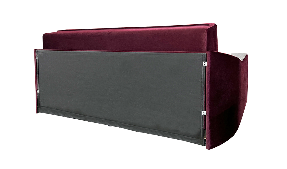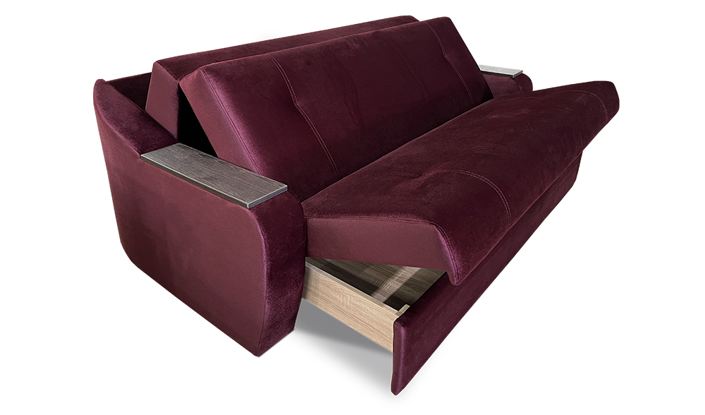 В диване используется механизм трансформации типа «Аккордеон» спальное место которого состоит из трех частей, одна из которых в собранном состоянии служит сидением, а две остальные – складываются в спинку.