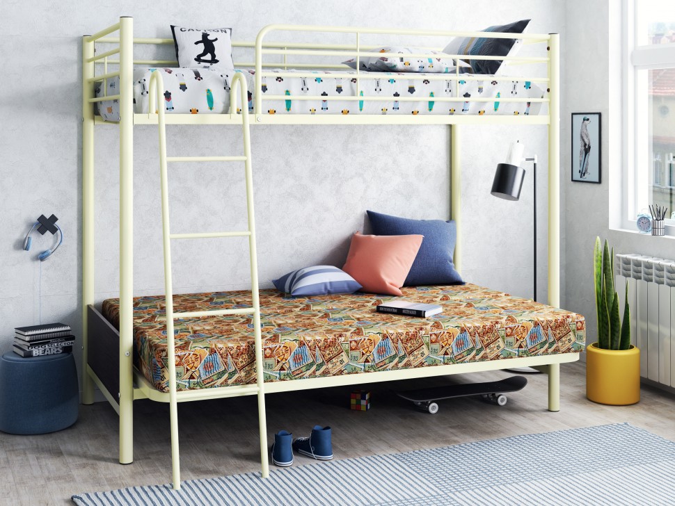 - Двухъярусная кровать Мадлен-2 изготавливается в конфигурации с раскладным диваном и приставной наклонной лестницей. Благодаря раскладному трехпозиционному механизму дивана вы получаете широкое раскладное спальное место внизу.