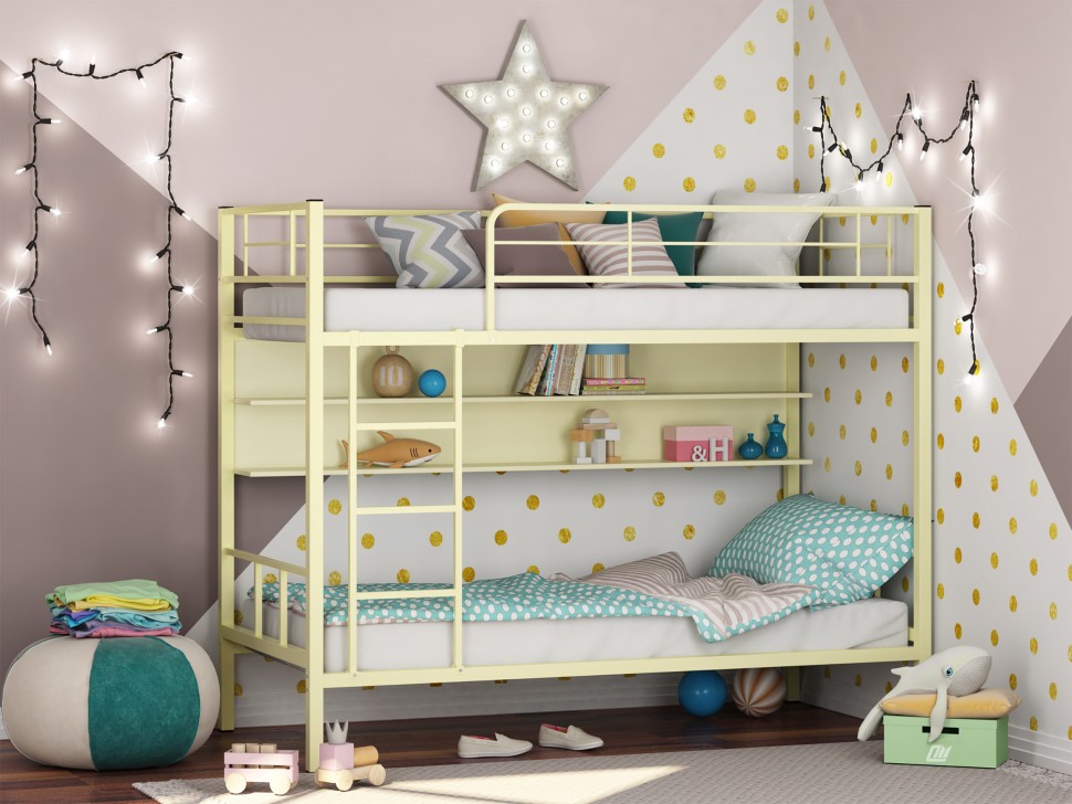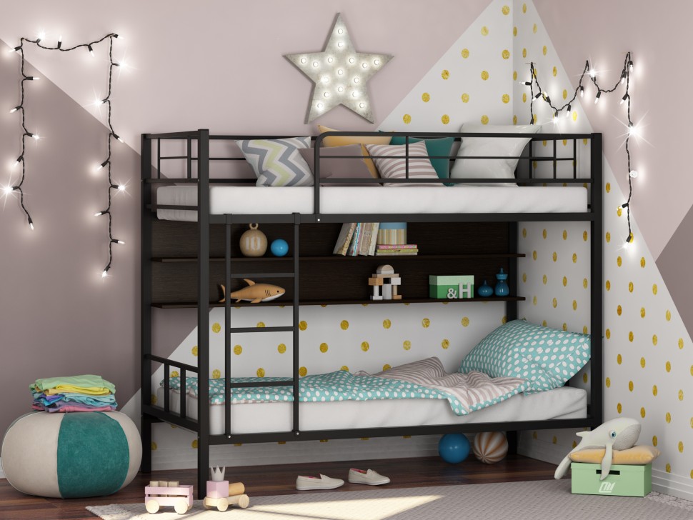Металлическая двухъярусная кровать Севилья - 2 с полкой способна выдерживать нагрузку до 180 кг (на одно спальное место), что делает ее подходящей как для детей, так и для взрослых.