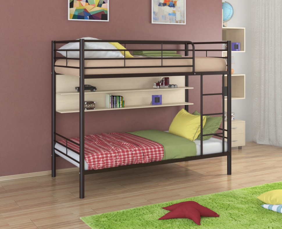 Металлическая двухъярусная кровать Севилья - 3 способна выдерживать нагрузку до 180 кг (на одно спальное место), что делает ее подходящей как для детей, так и для взрослых.
