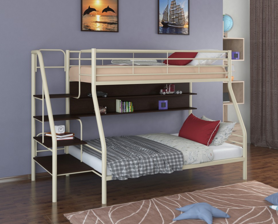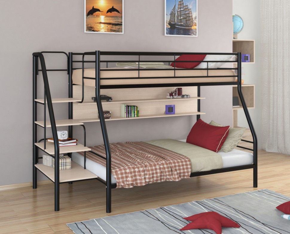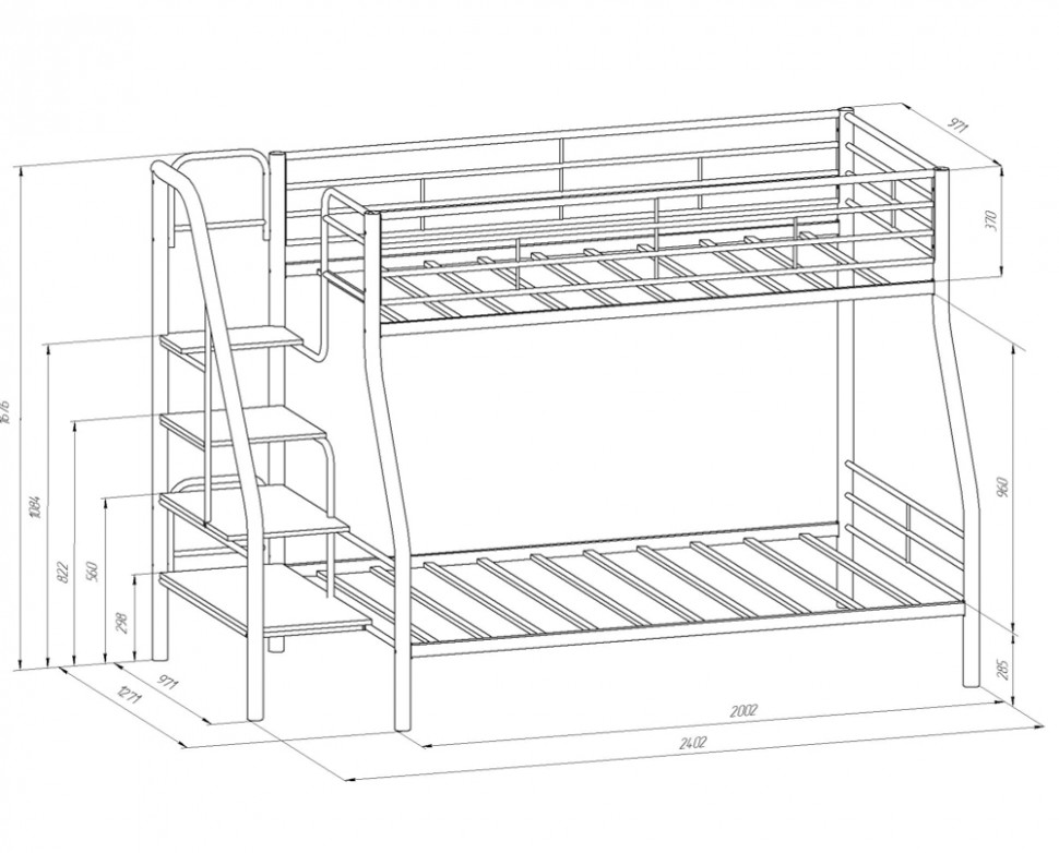код 124918Материал: металл. Спальные места 1900х1200 и 1900х900 мм. Оснащена полкой.