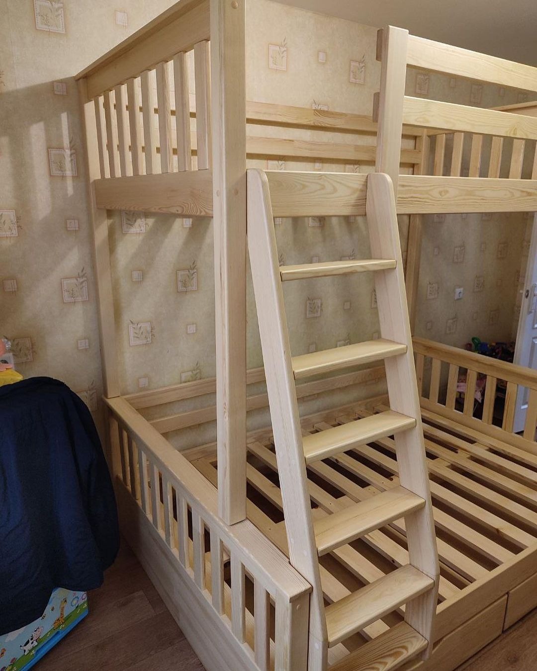 Кровать «Эрни Литтл» из массива сосны (с лесенкой и ящиками) (антик)