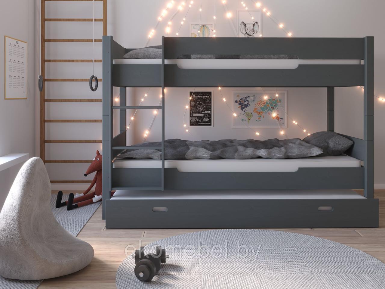Двухъярусная кровать «Ростик» с доп. спальным местом (80х190, 90х180, 90х190, 90х200 см)