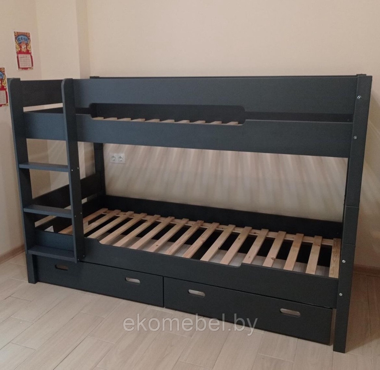 Детская двухъярусная кровать из массива «Вуди-4.1» с ящиками