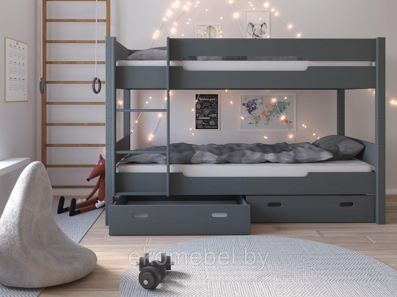 Двухъярусная кровать «Амелия» с ящиками (90х200 см) Массив сосны