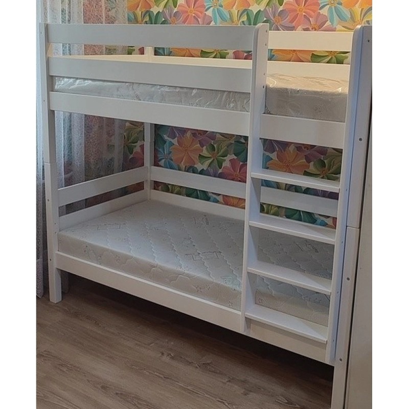 Детская (подростковая) двухъярусная кровать «Rostik» 2в1 (белая) без нижнего бортика и ящиков