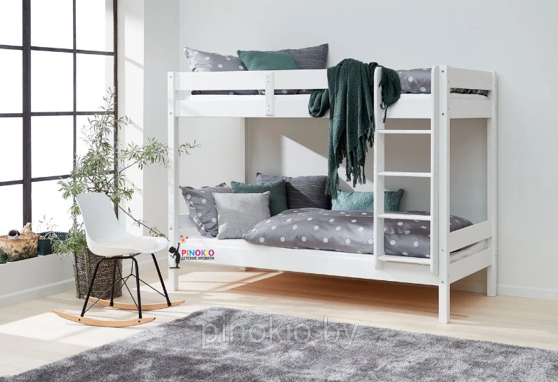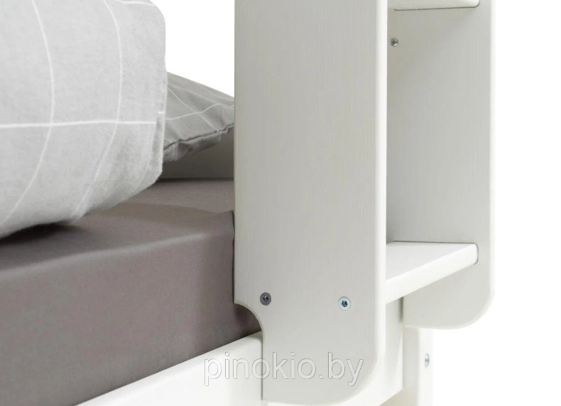 - Кровать изготовлена из 100% древесины первого сорта и оснащена защитными ограждениями и вертикальной лестницей.