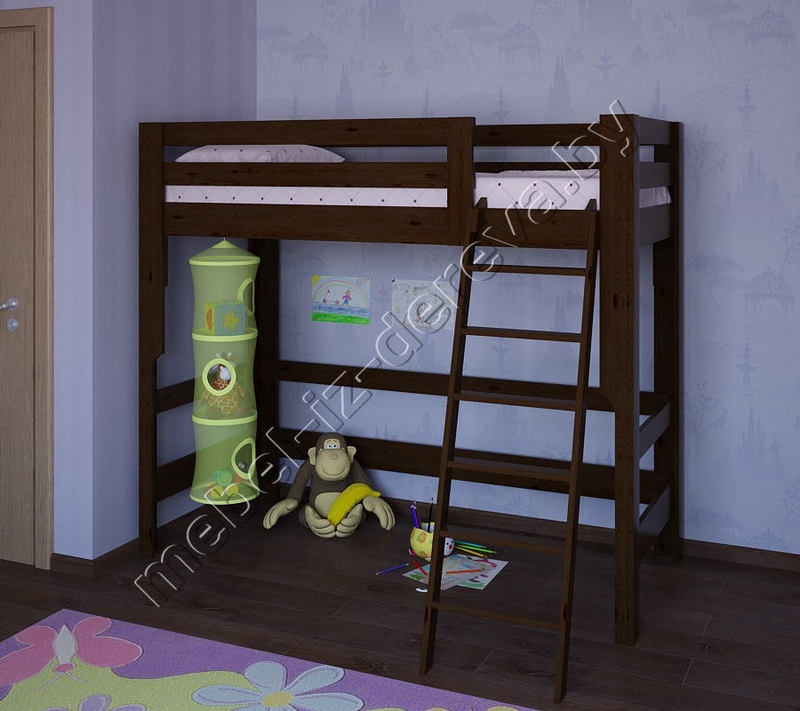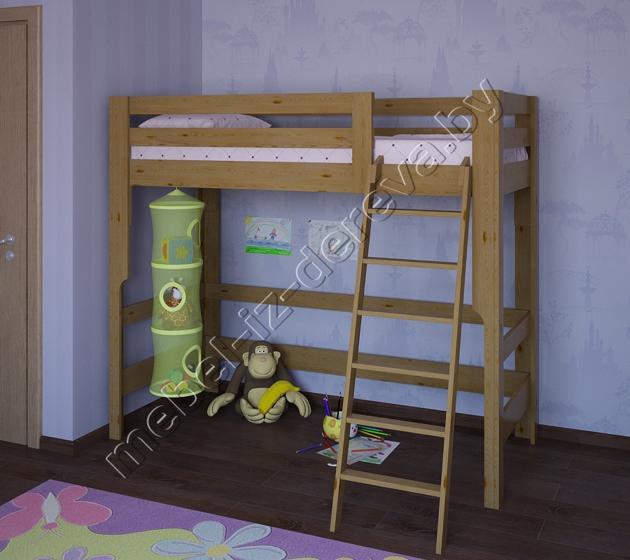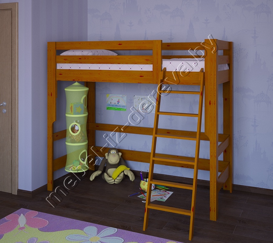 Отличительной особенностью данной модели является система крепления съемной лестницы. Верхний ярус кровати предназначен для сна, а нижний может служить игровым местом вашему ребенку.Натуральный массив, из которого выполнена конструкция, позволит кровати сохранить на долгое время ее высокую функциональность и красоту.