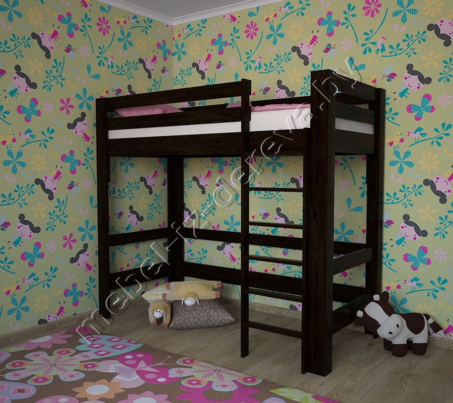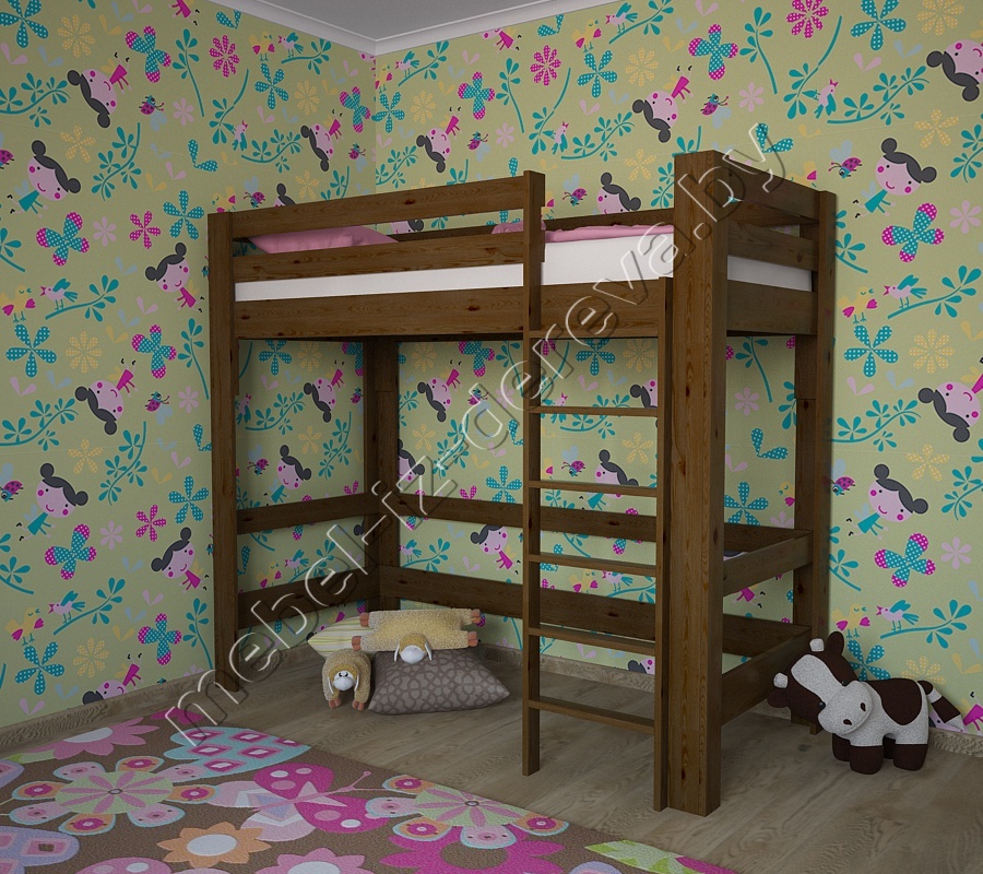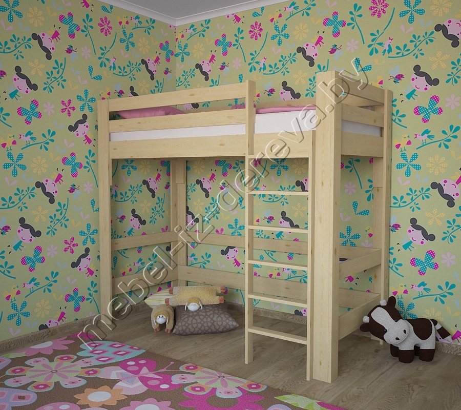 Комфортная кровать-чердак оснащена уютным спальным местом, расположенном на втором ярусе, и свободной нижней зоной, предназначенной для игр. Лестница, выполненная, как и кровать из натурального массива, совершенно безопасна и может быть установлена на любой из сторон кровати.