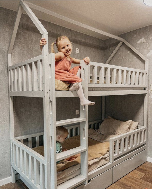 Двухъярусная кровать домик из массива сосны «Вуди-5»