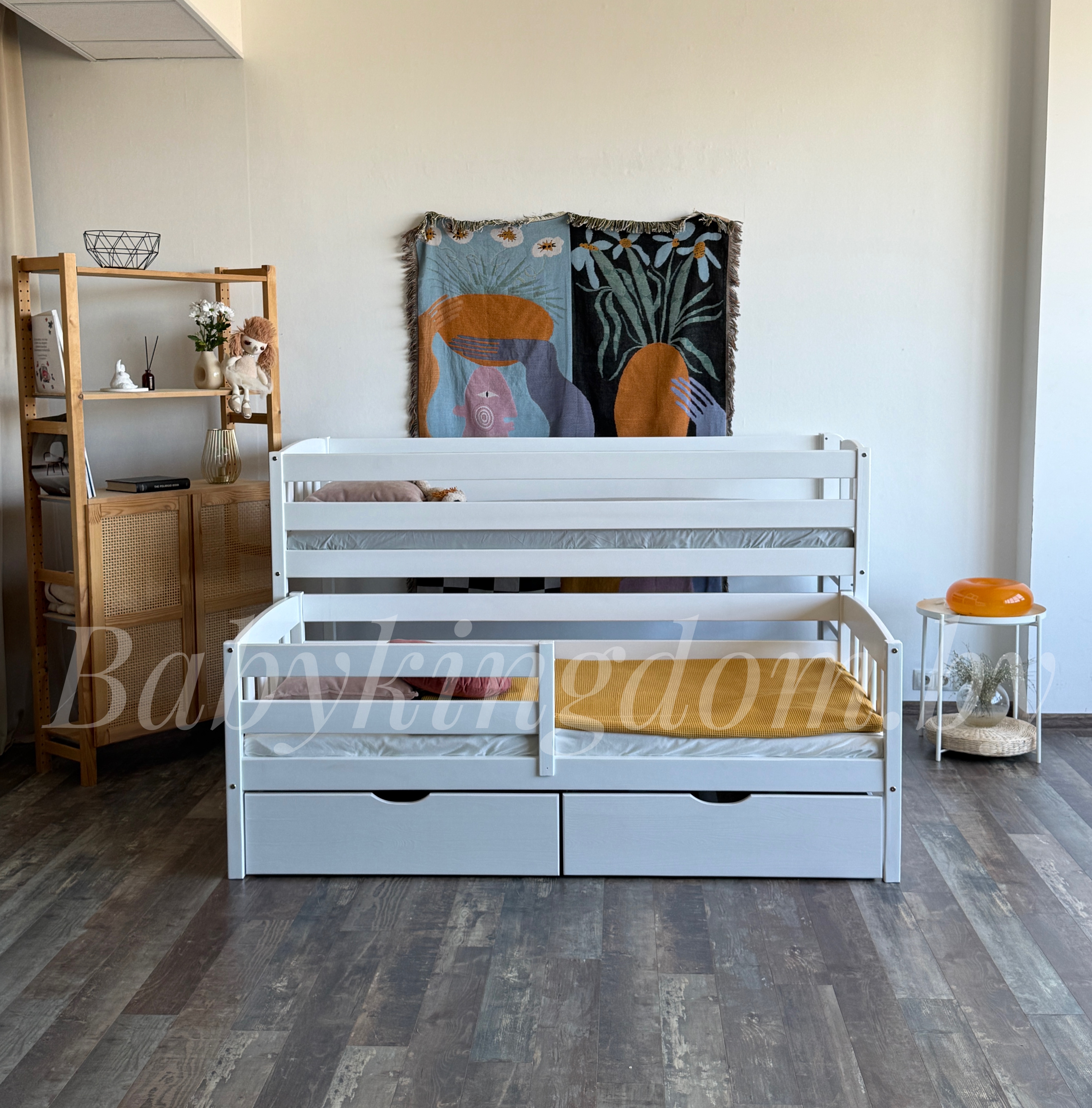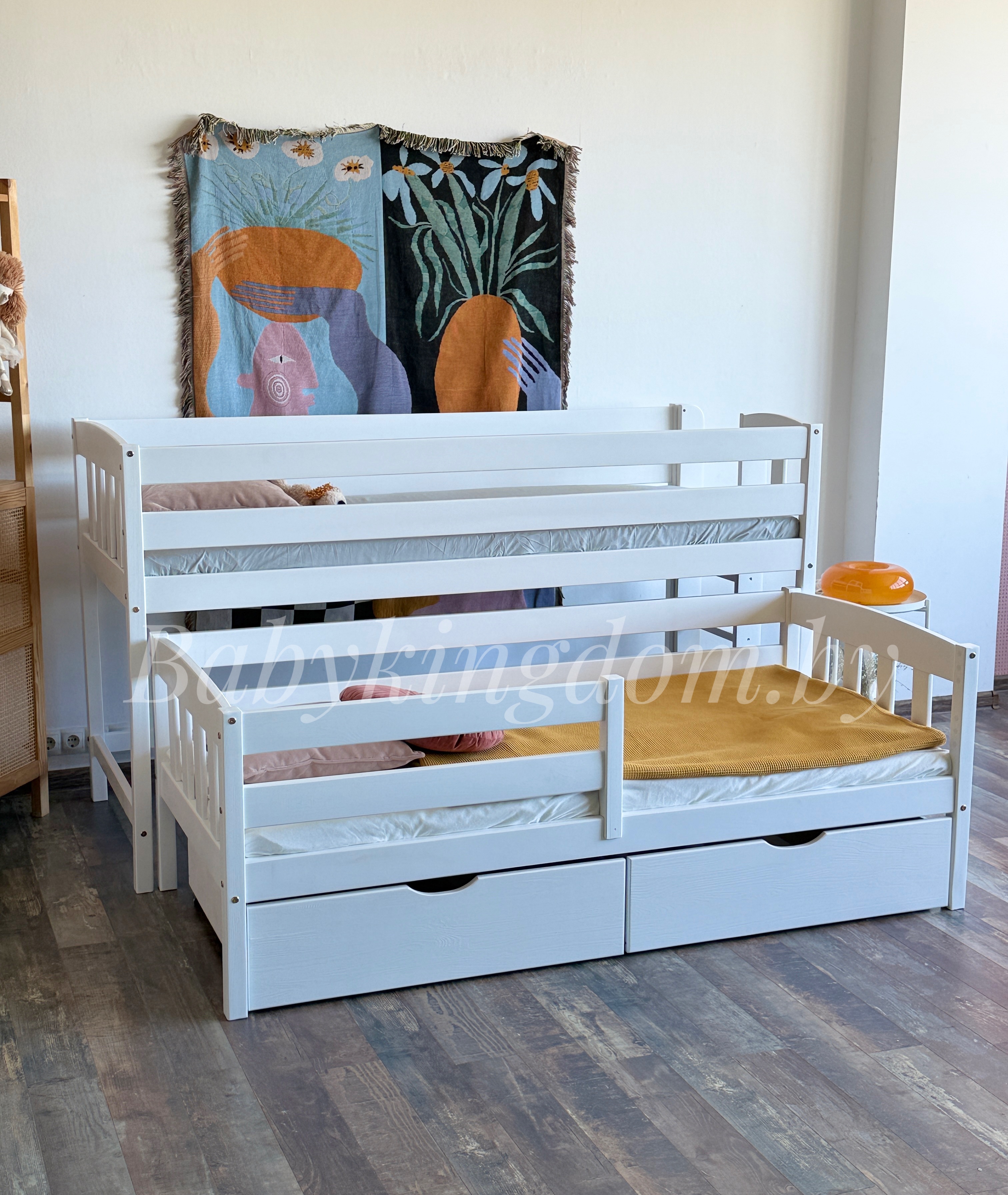 Раздвижная двухъярусная кровать «Энни 2в1» из массива сосны отличное и компактное решение для большой семьи .