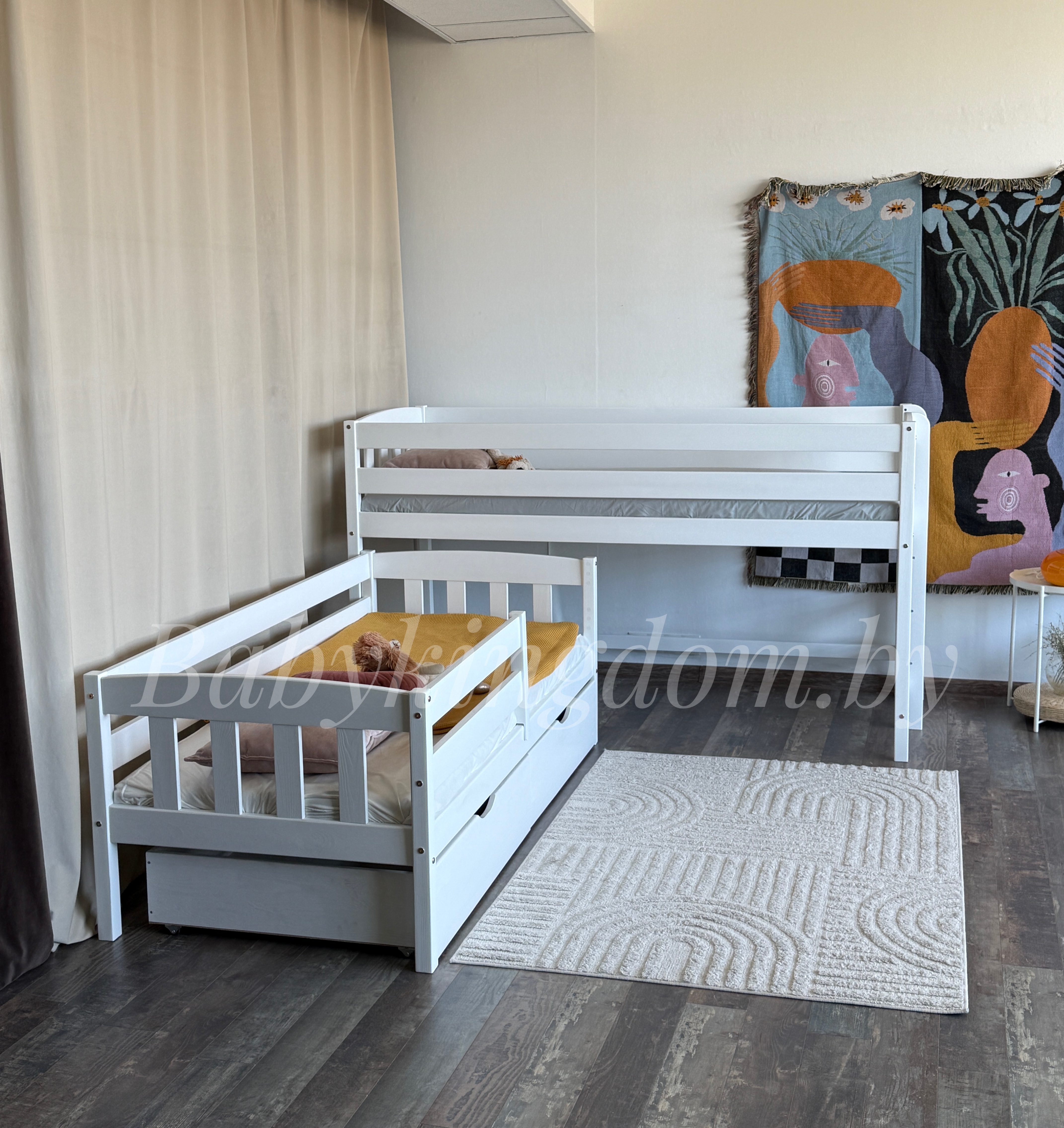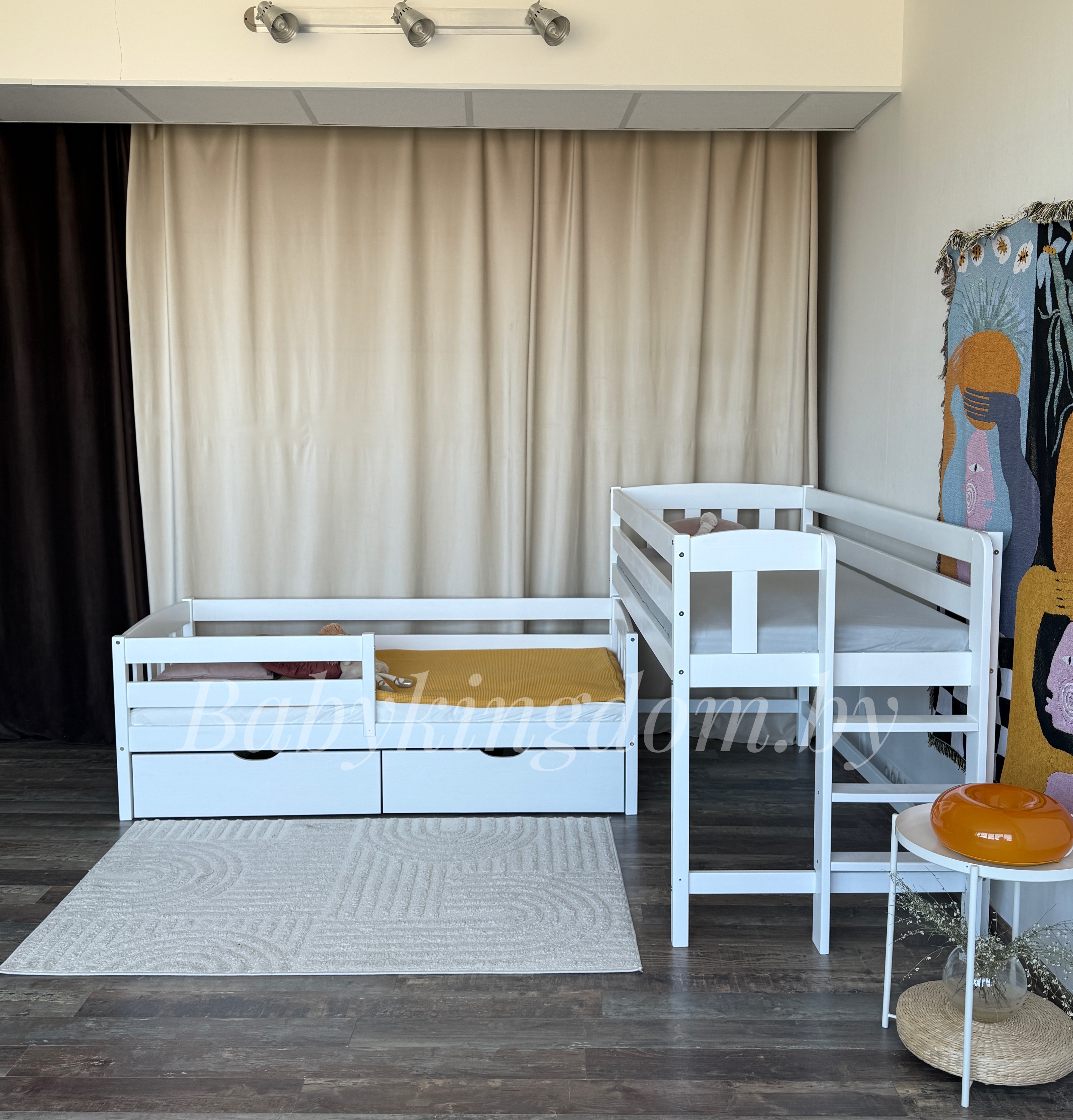 Кровати «Энни 2в1 » из массива сосны имеет надежные бортики и лестницу, что обеспечивает безопасность при использовании, особенно для маленьких детей.