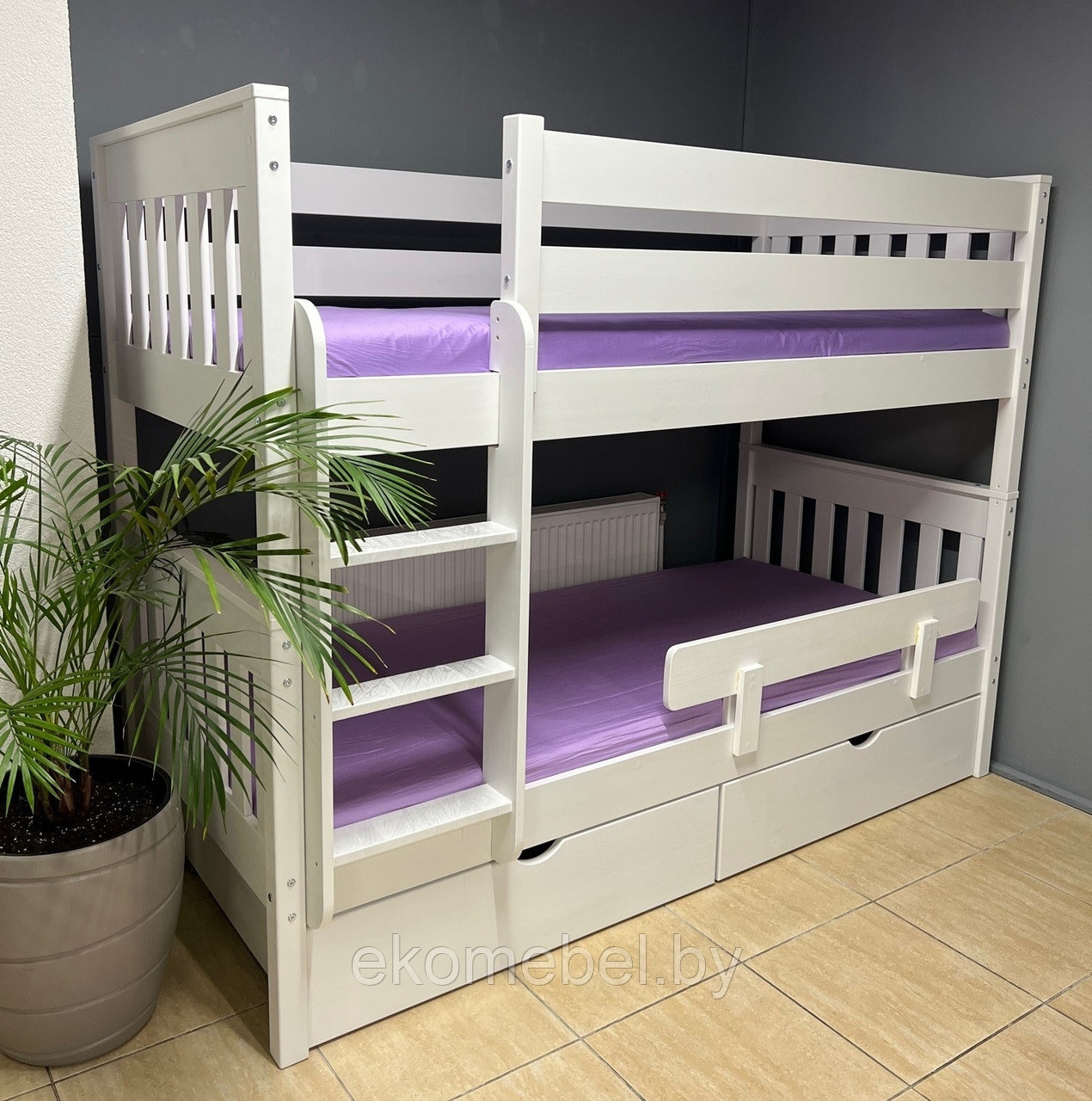 Двухъярусная кровать «Эрик» с ящиками и бортиком (90х200 см) Массив сосны