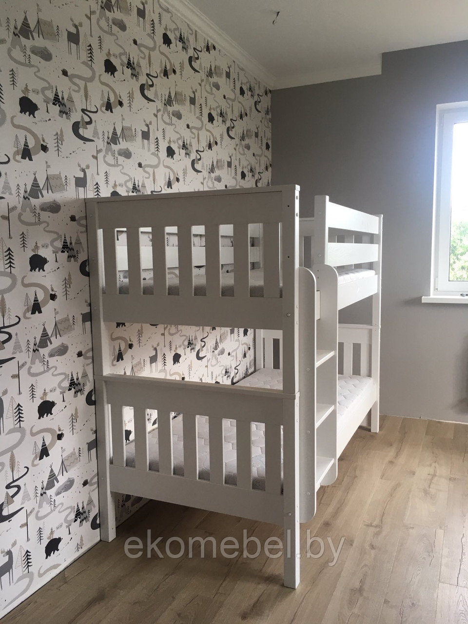 Двухъярусная кровать из массива березы «Вуди-1» с ящиками (белый)