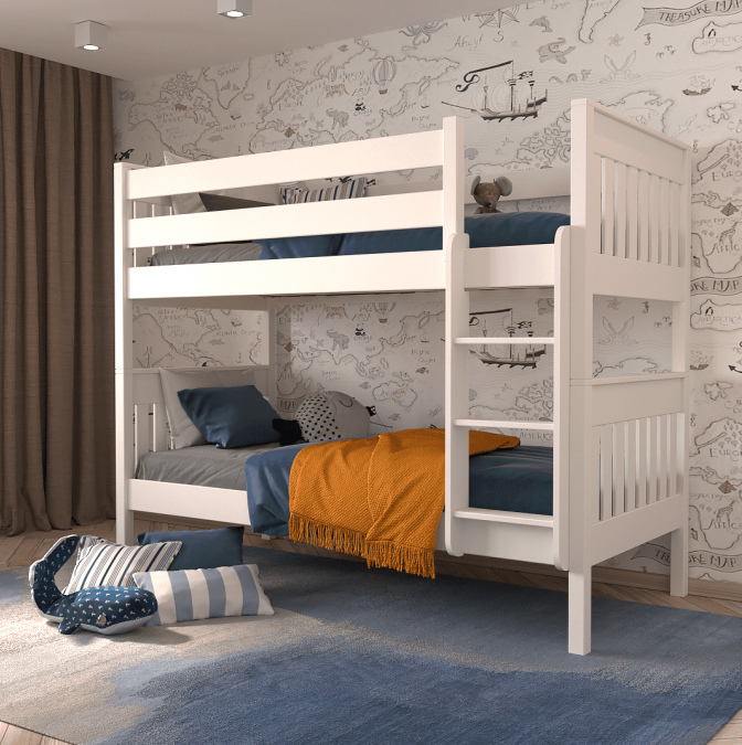 Двухъярусная кровать имеет очень интересный и функциональный дизайн. Она отлично подойдёт для семей с двумя детьми.