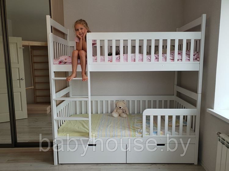 Кроватку можно использовать как двухъярусную, либо как 2 полноценные односпальные кровати.