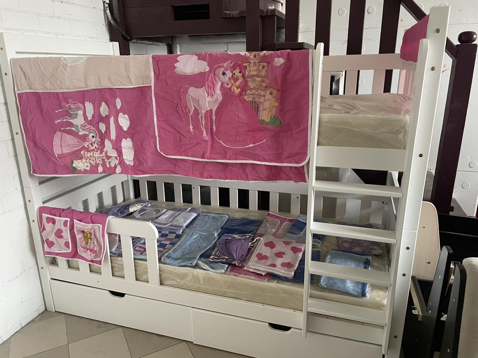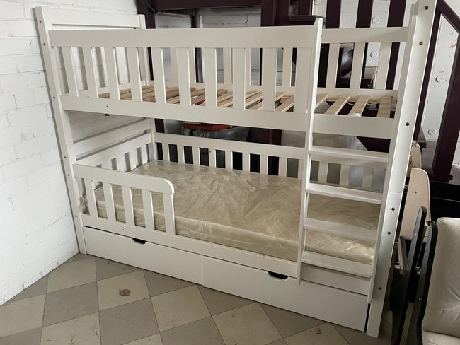 Детская (подростковая) двухъярусная кровать «Rostik» 2в1 (белая) без нижнего бортика и ящиков