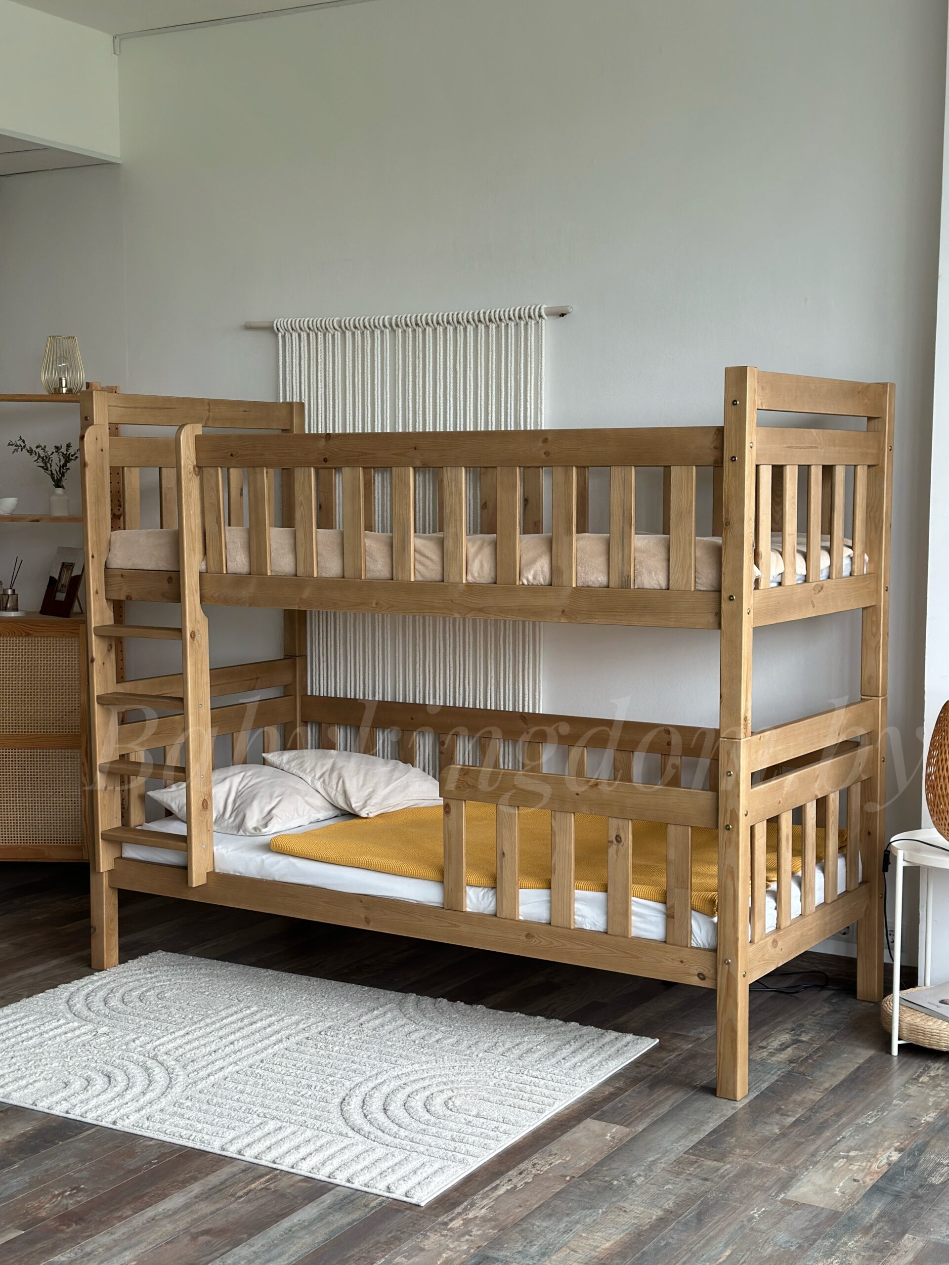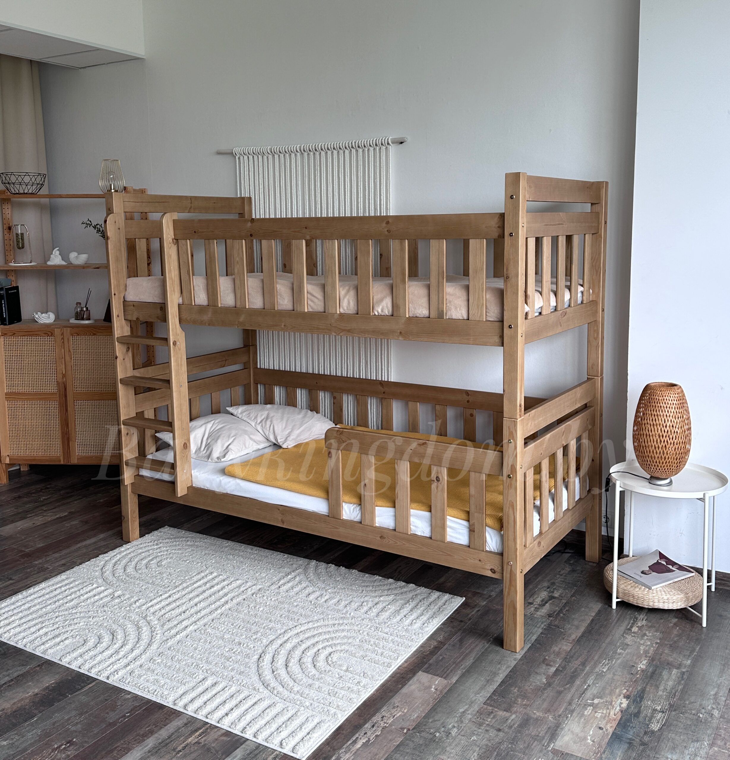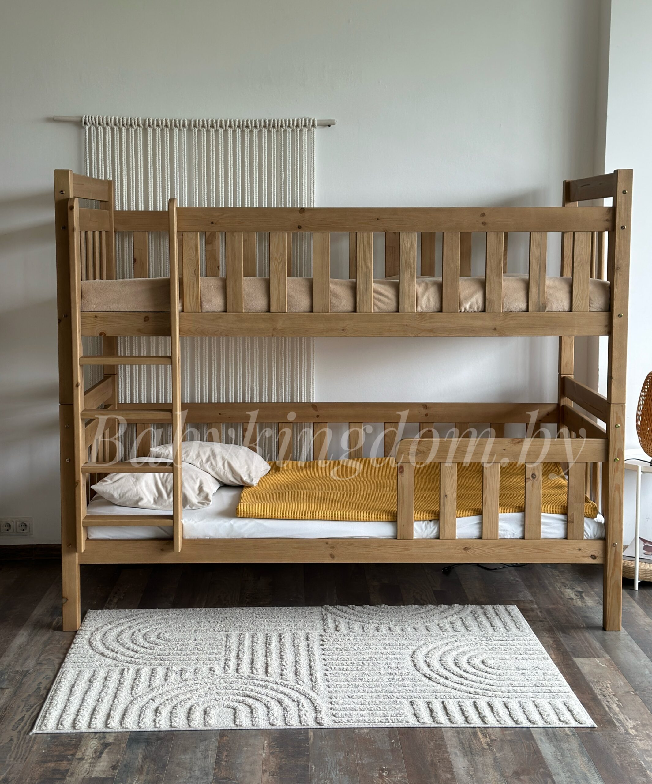 Дизайн кровати выполнен в классическом стиле, который гармонично впишется в любой интерьер. Безопасные бортики и надежная лестница обеспечивают комфорт и спокойствие для родителей, а просторные спальные места — радость для детей.