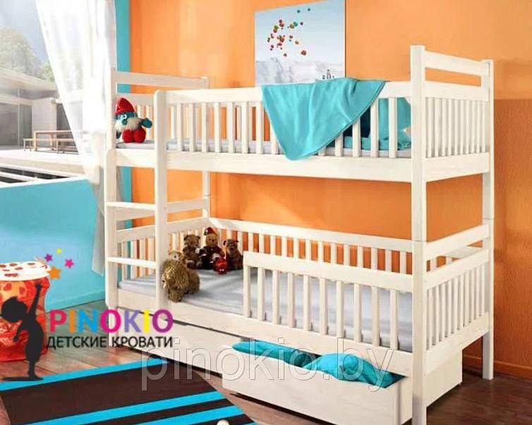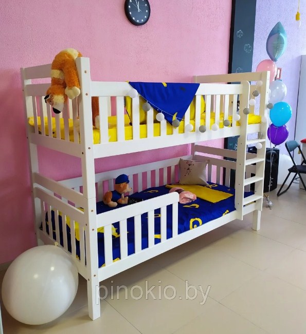 - Кровать изготовлена из 100% древесины первого сорта и оснащена защитными ограждениями и вертикальной лестницей.