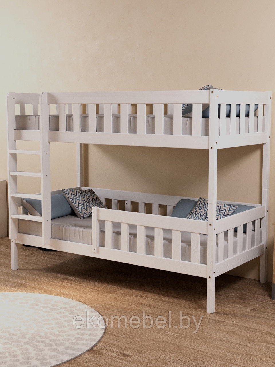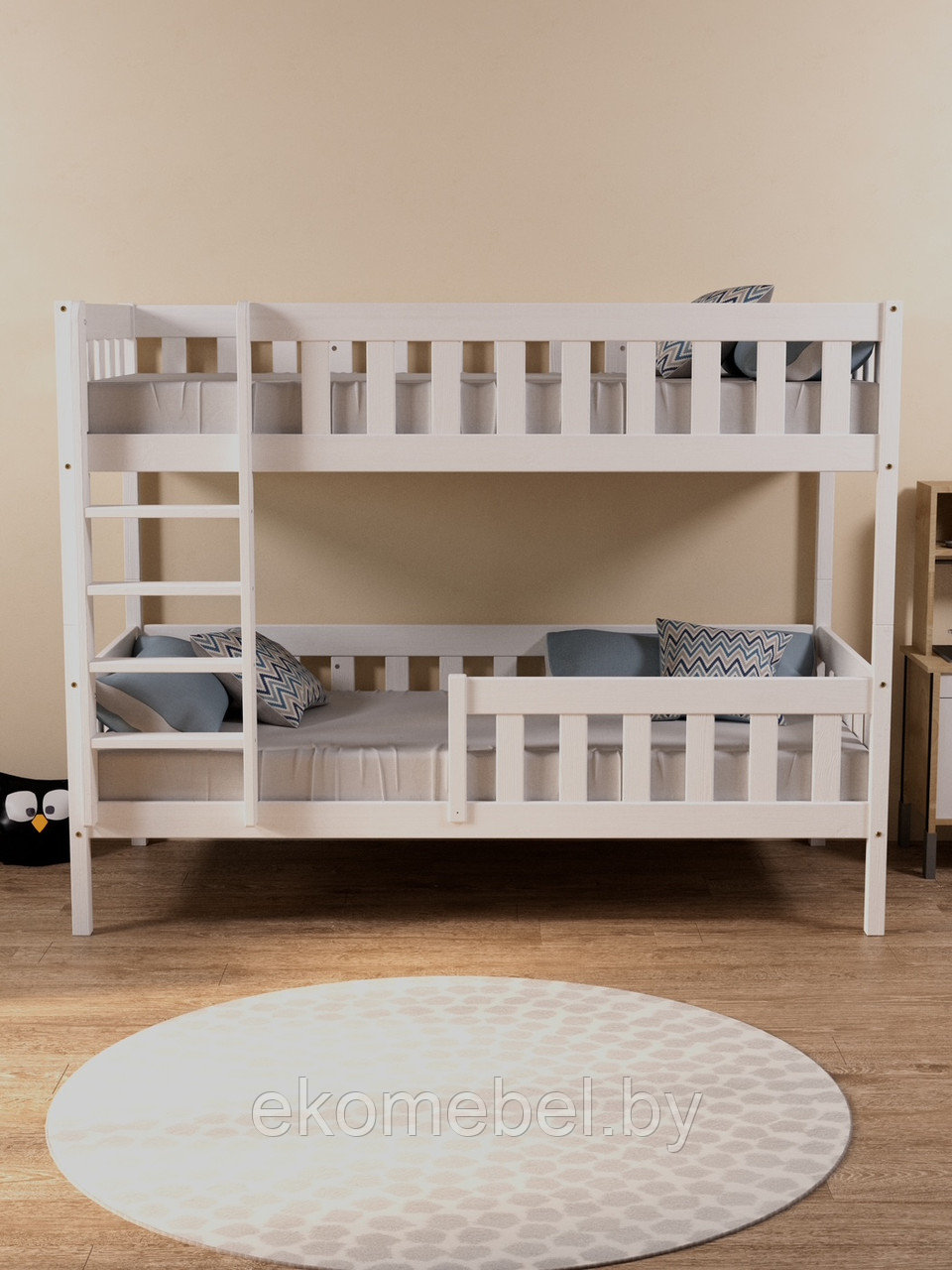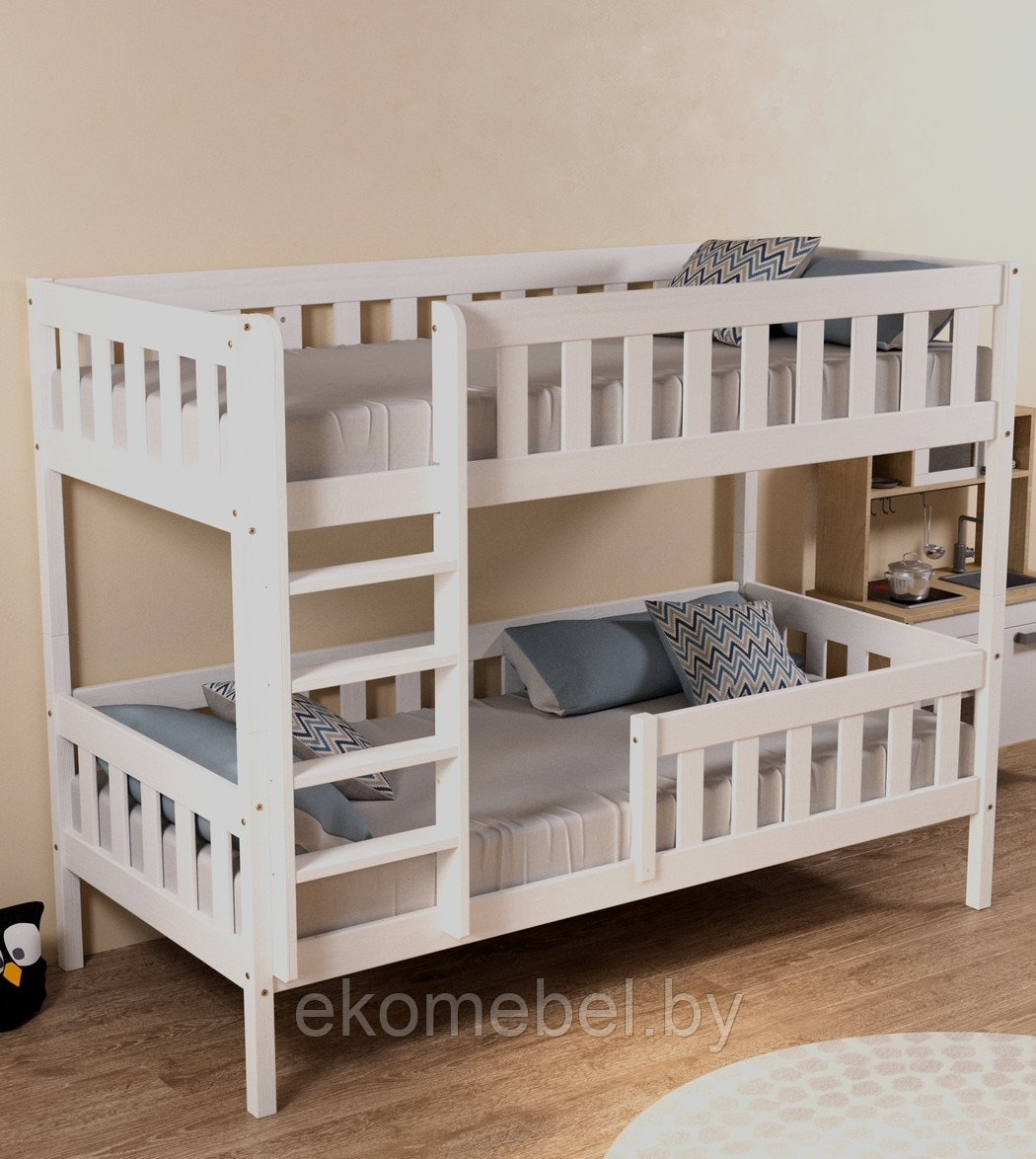 Бортики по периметру верхнего яруса и нижнего яруса обеспечивают дополнительную защиту, предотвращающую падение во время сна. Они выполнены с учетом всех стандартов безопасности, что делает кровать идеальной для детей.