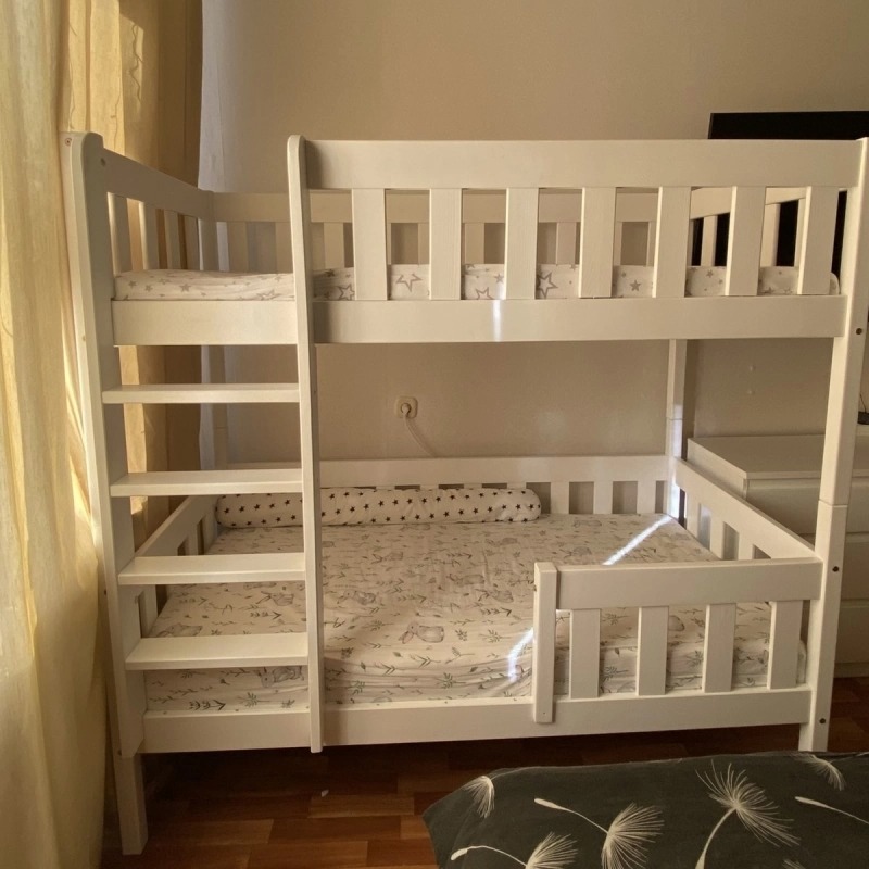 Кровать покрыта абсолютно безопасной краской на водной основе, так что можете быть спокойны за безопасность ваших деток.
