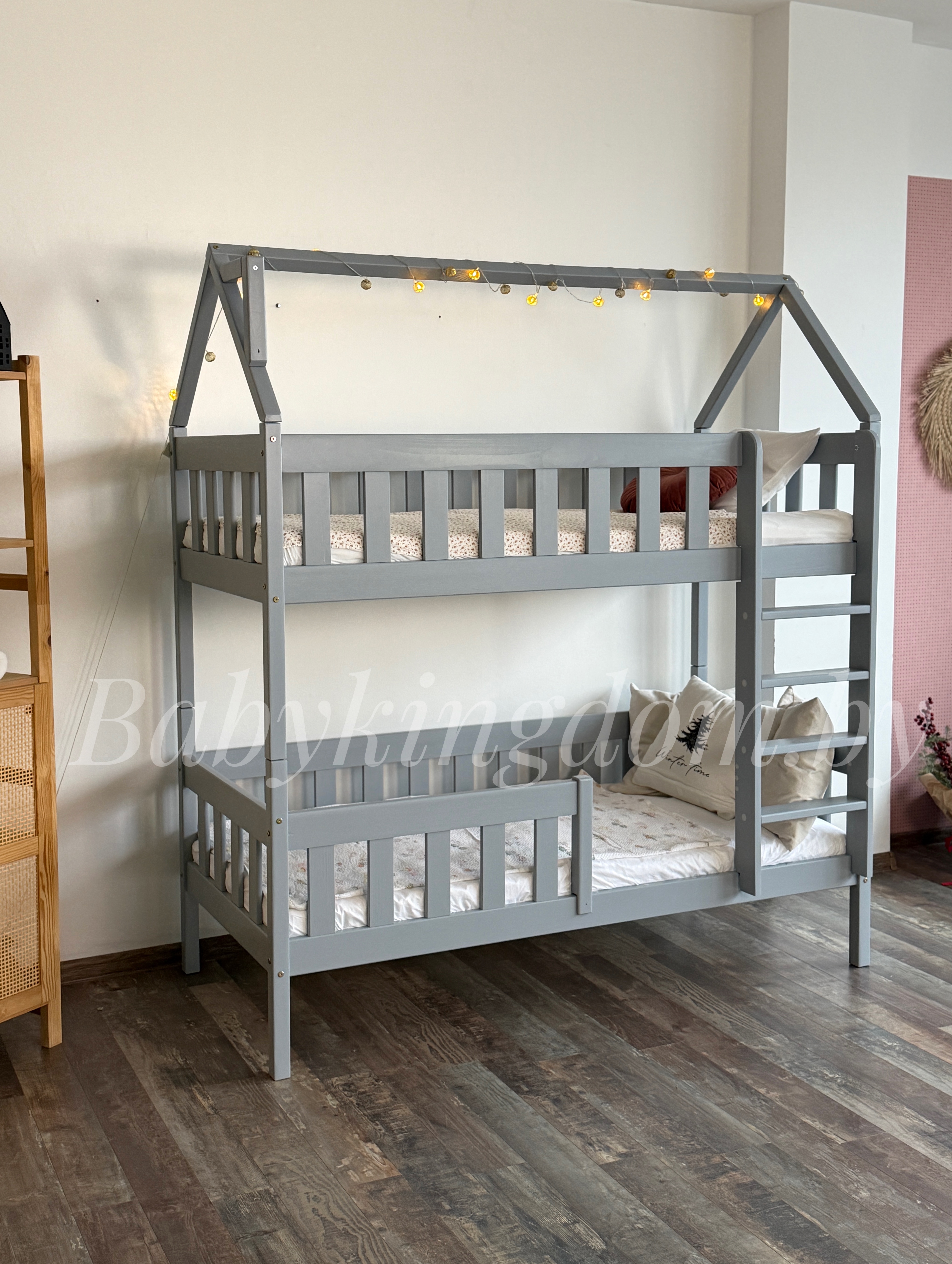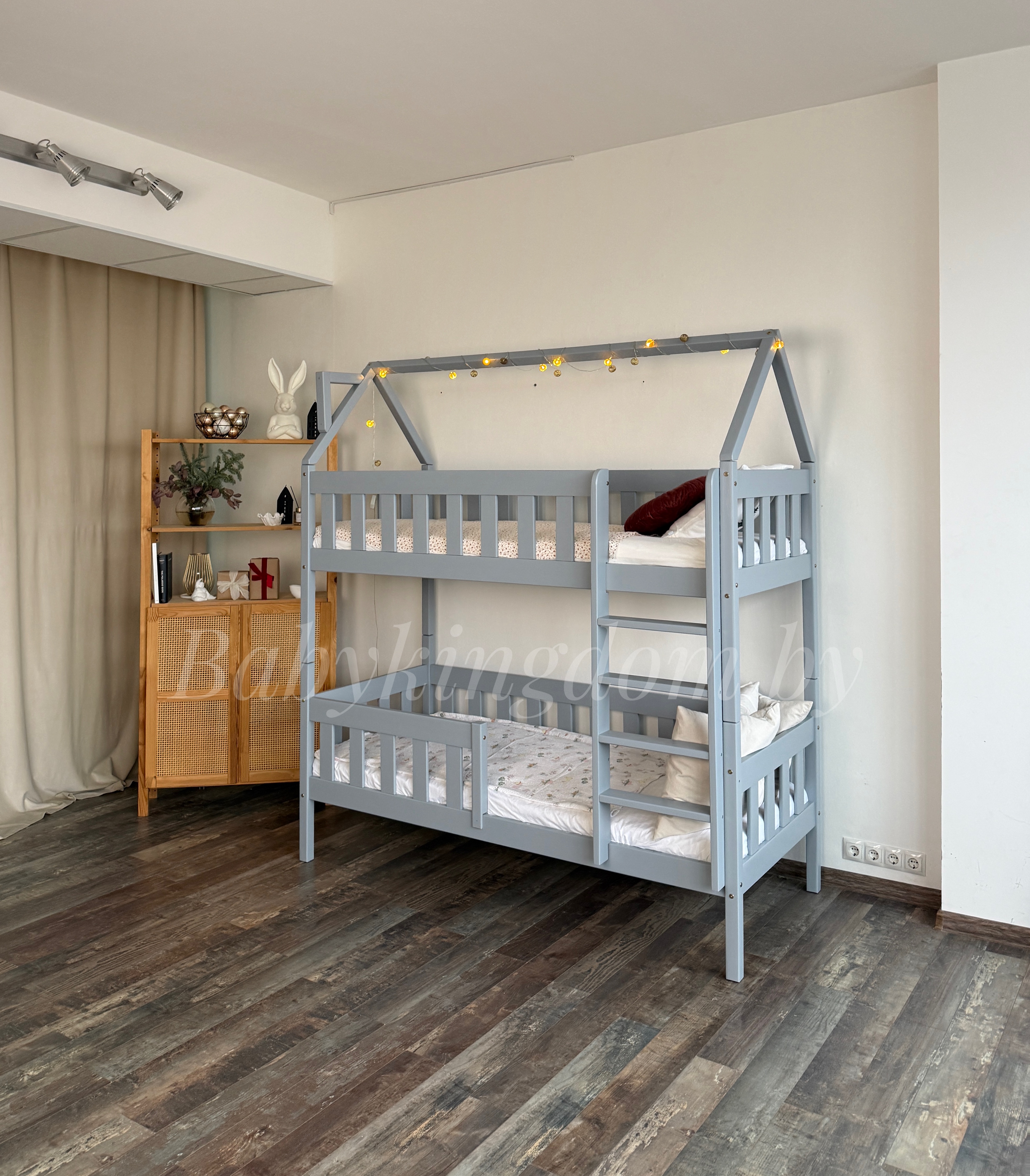 Двухъярусная кровать «Грейси Домик» из массива сосны (серый)