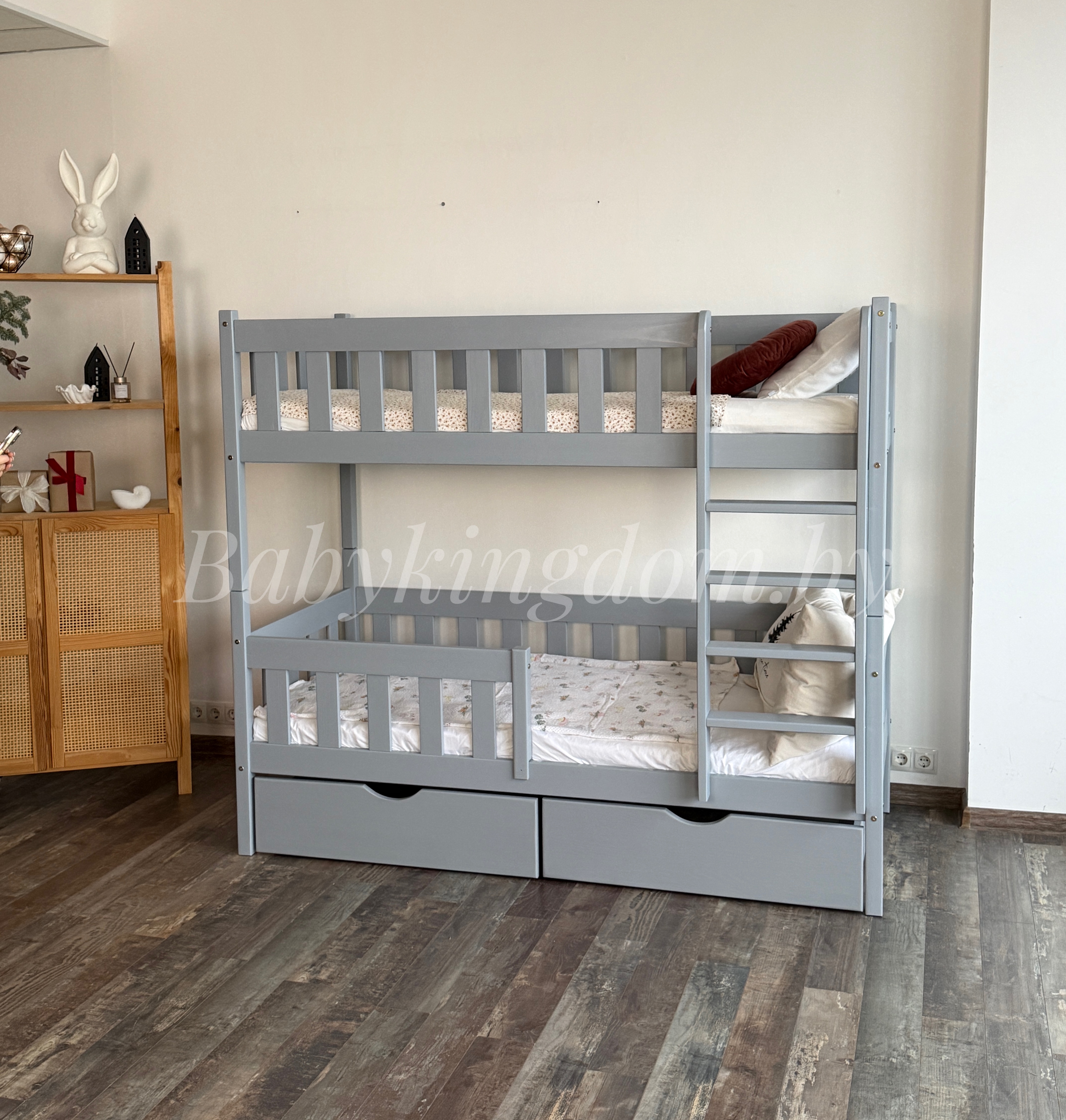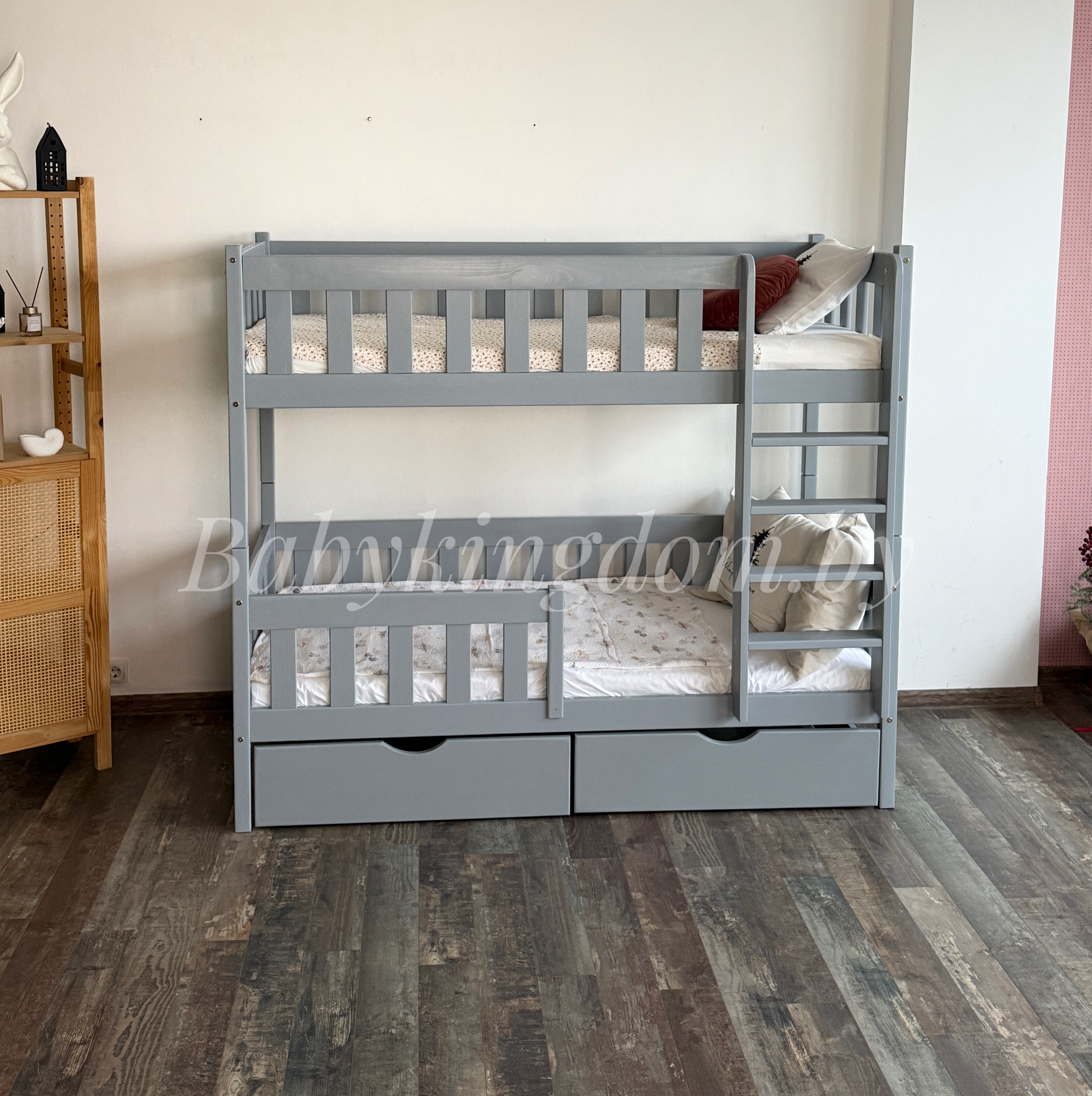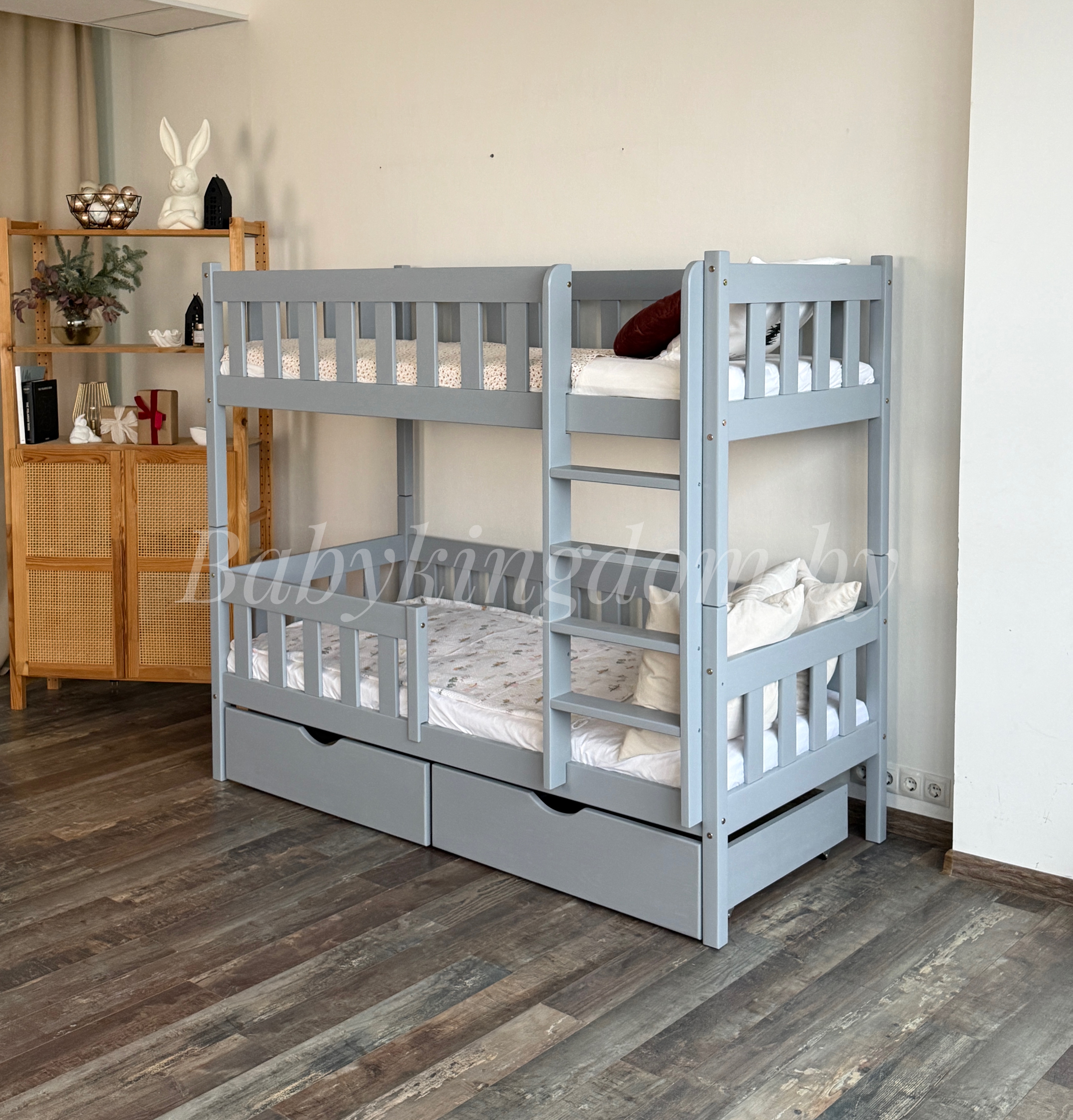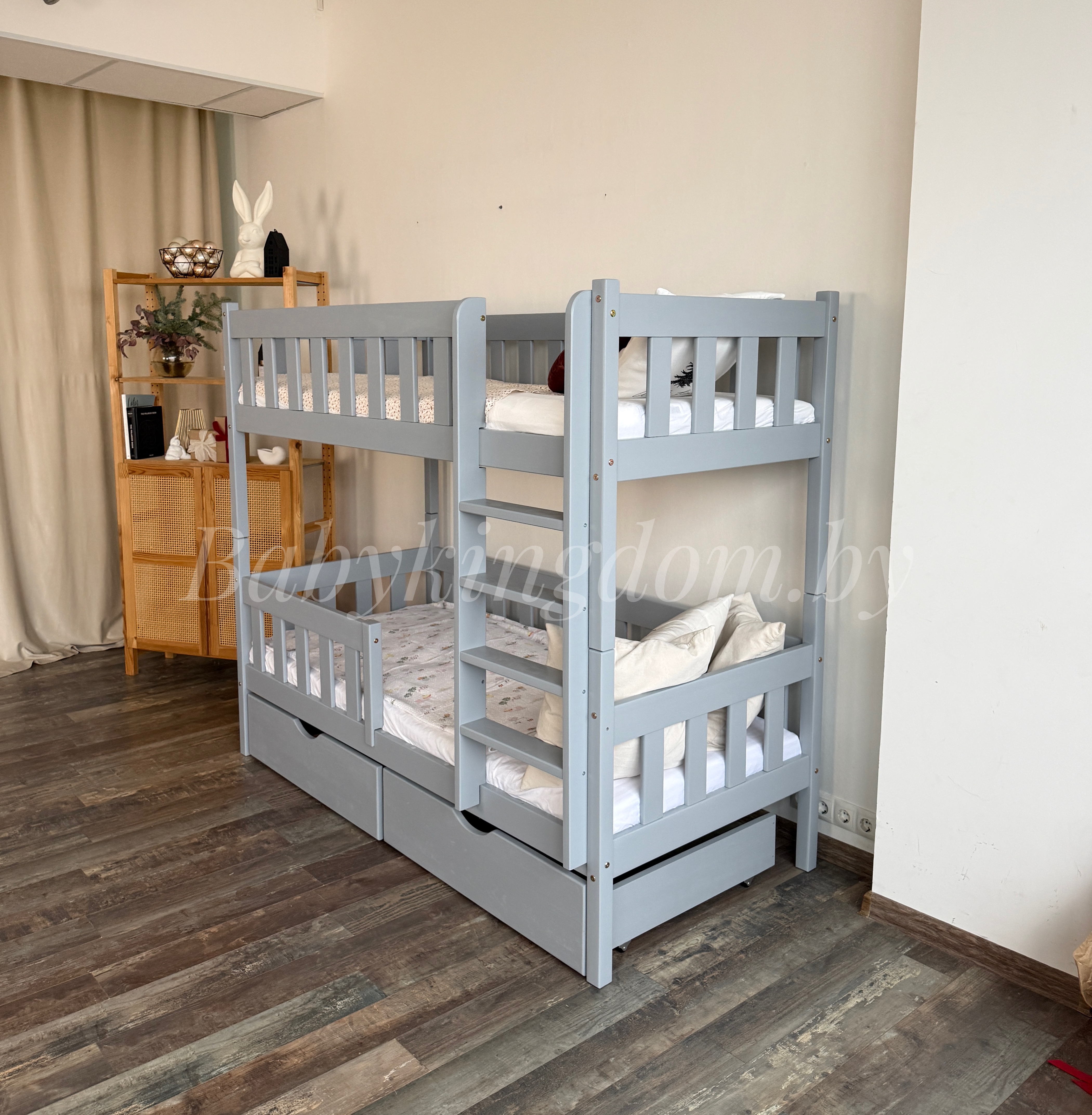 Двухъярусная кровать «Грейси» из массива сосны с ящиками (серый)