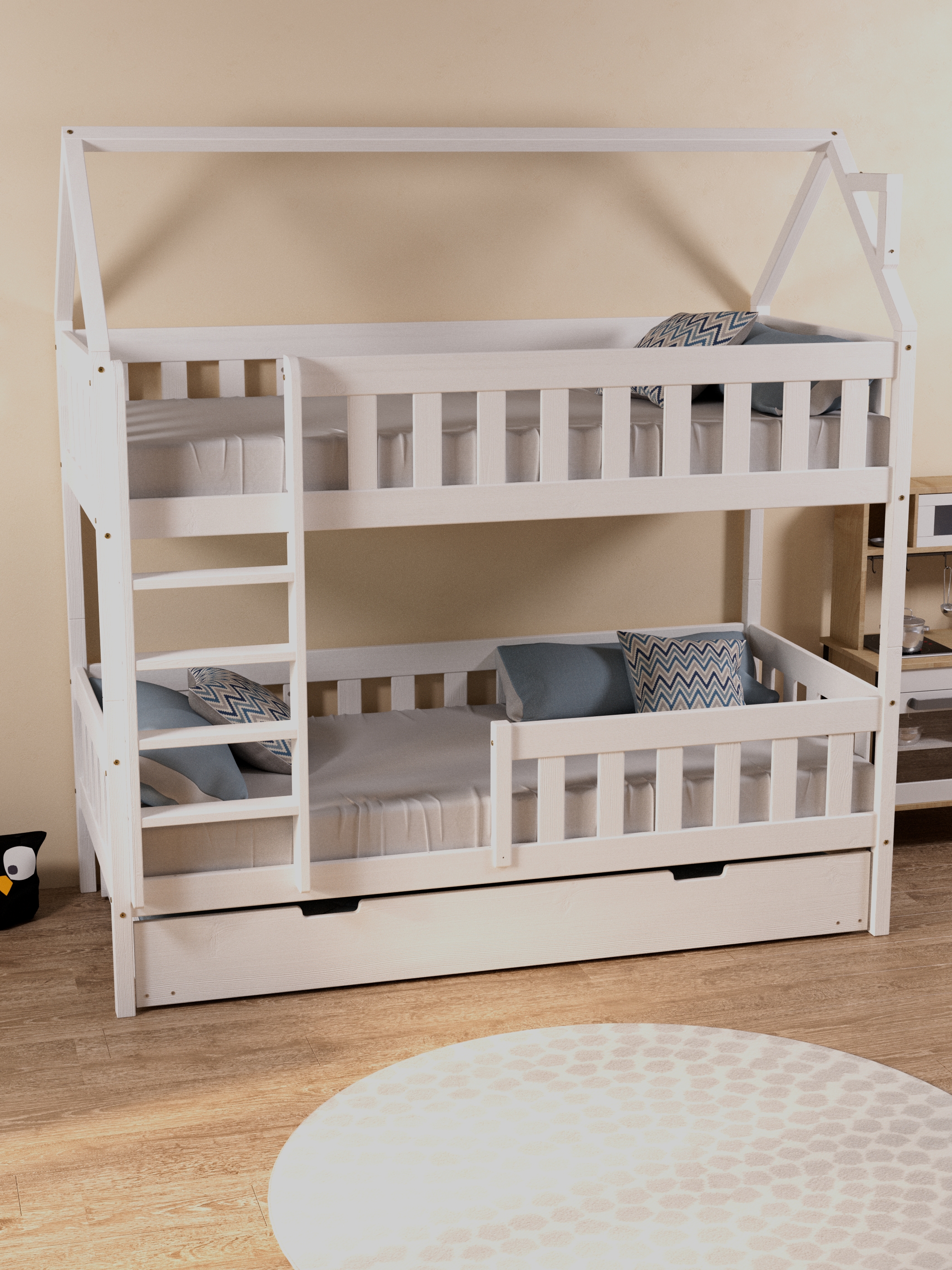 Двухъярусная кровать «Эрик» с ящиками и бортиком (90х200 см) Массив сосны