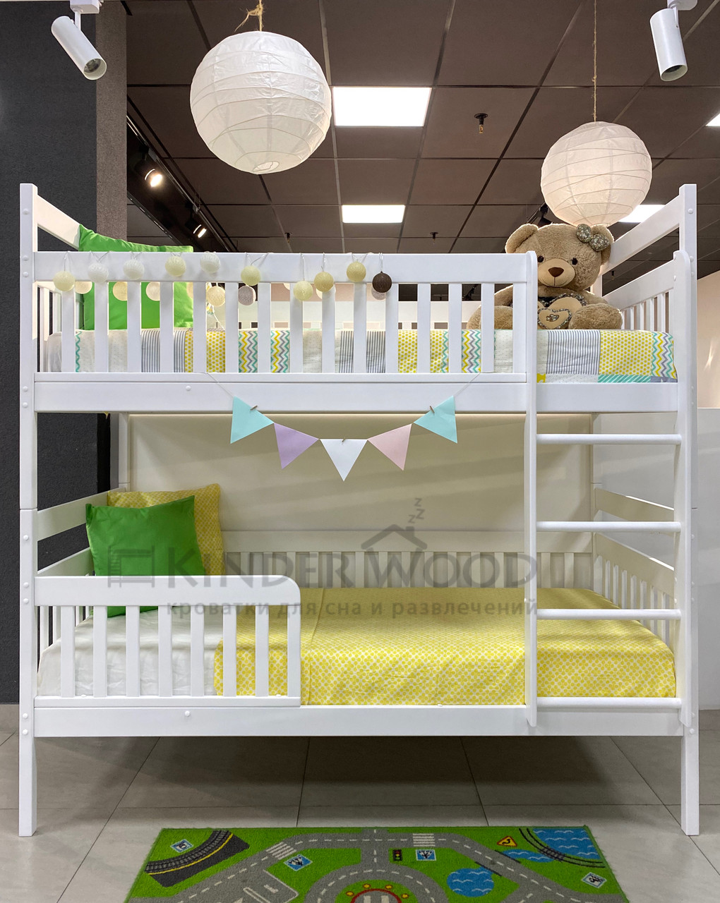 Двухъярусная кровать из массива березы «Вуди-3» без ящиков (белый)