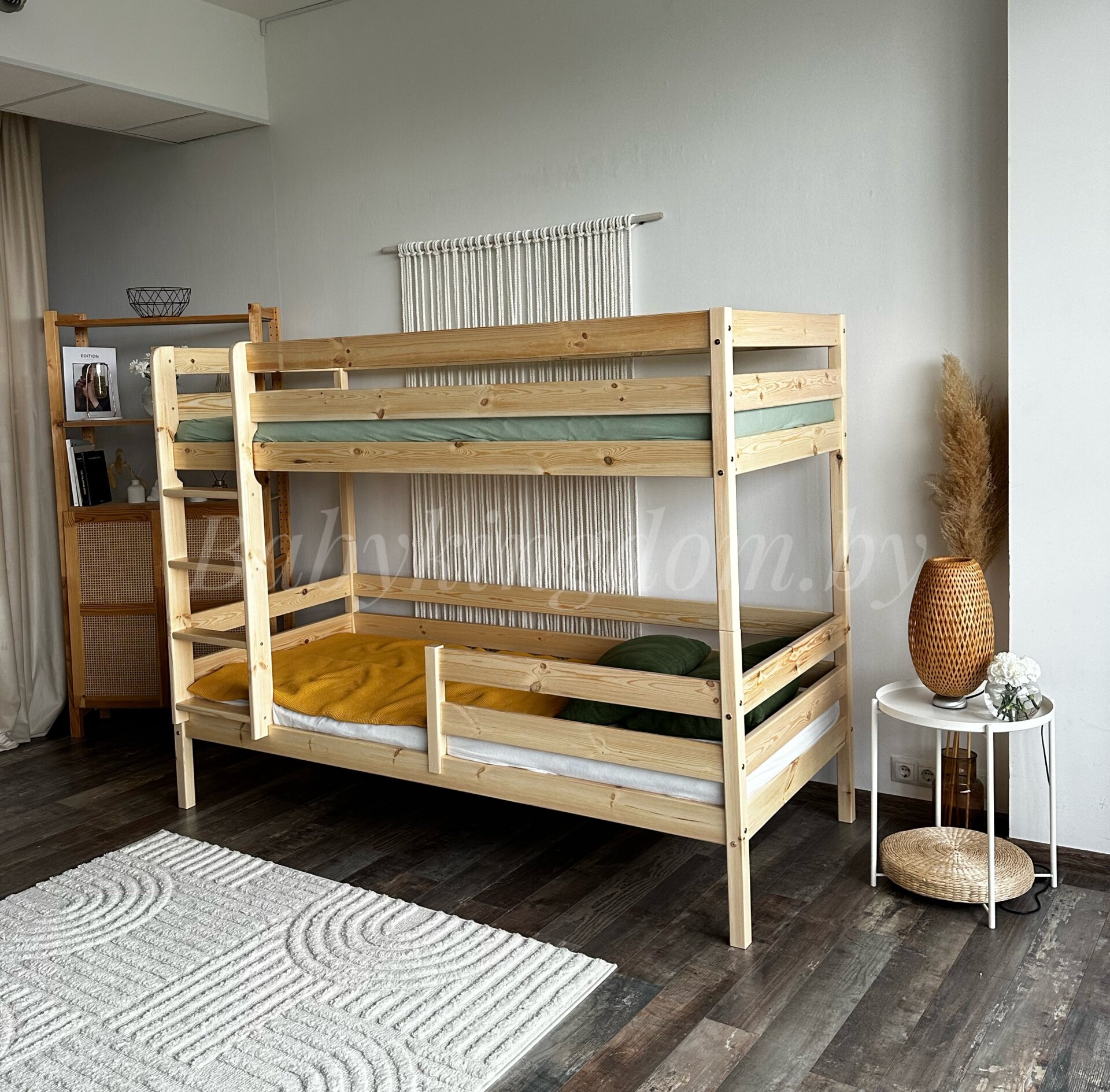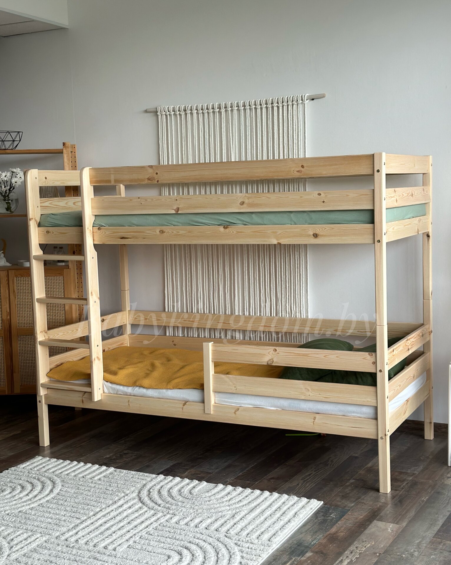 Кровать “Марта 2 в 1” оборудована бортиками не только на верхнем ярусе, но и на нижнем. Они позволяют сделать сон безопаснее, а спальное место – интимнее! Подъем на второй ярус осуществляется по удобной лесенке. Её можно закрепить как с правой, так и с левой стороны!