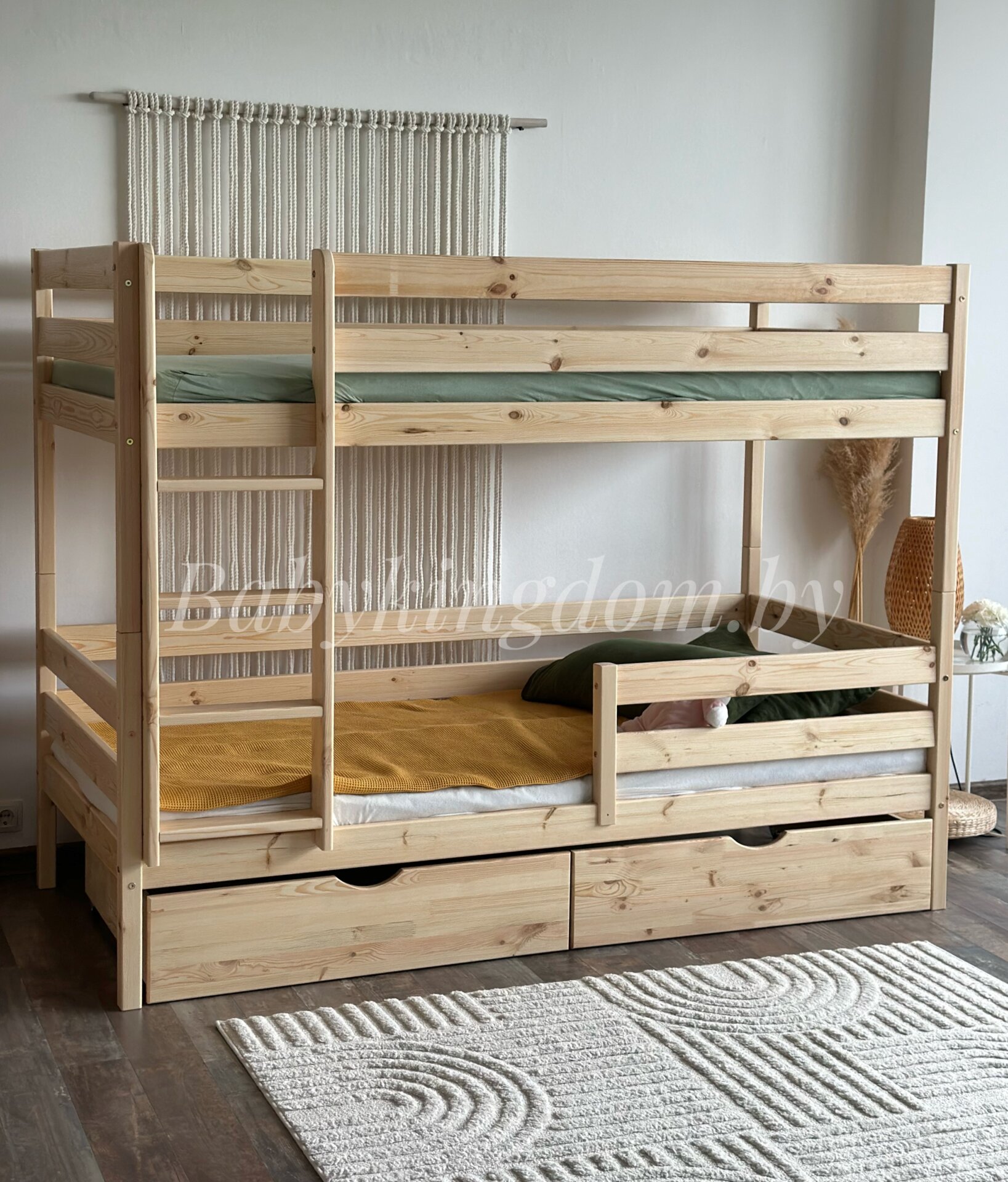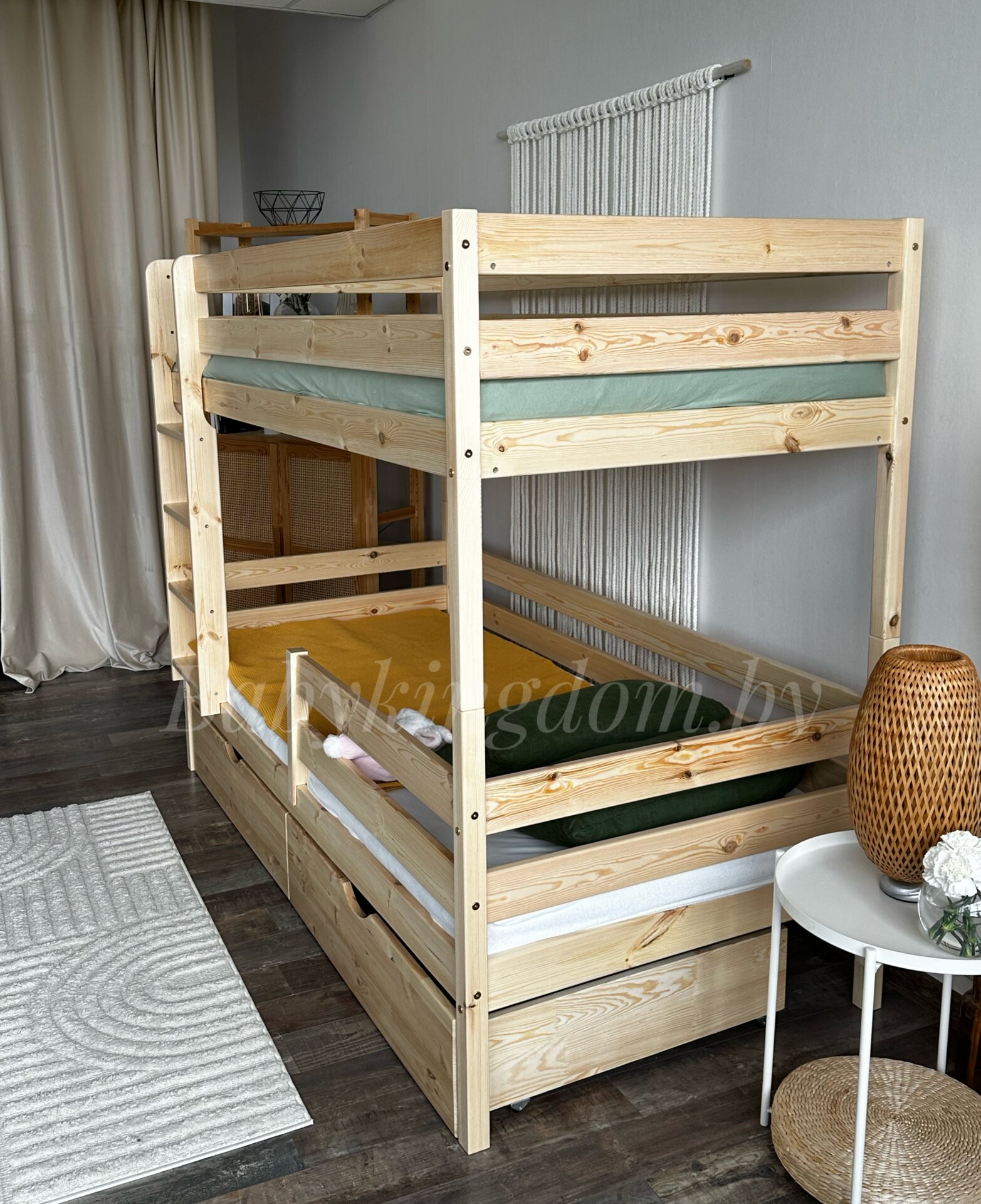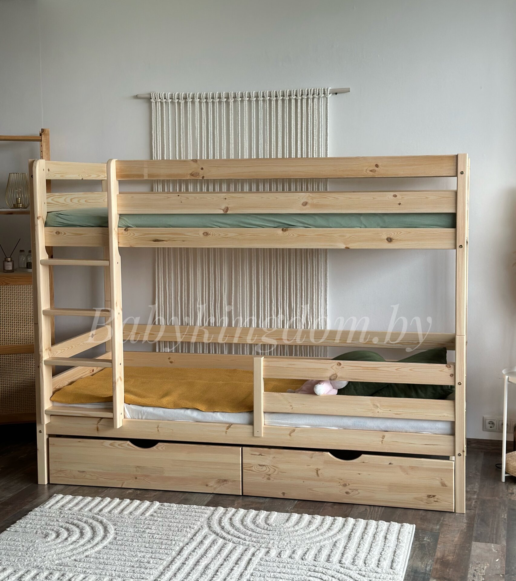 Двухъярусная кровать из массива сосны «Марта 2в1» с ящиками (лак)