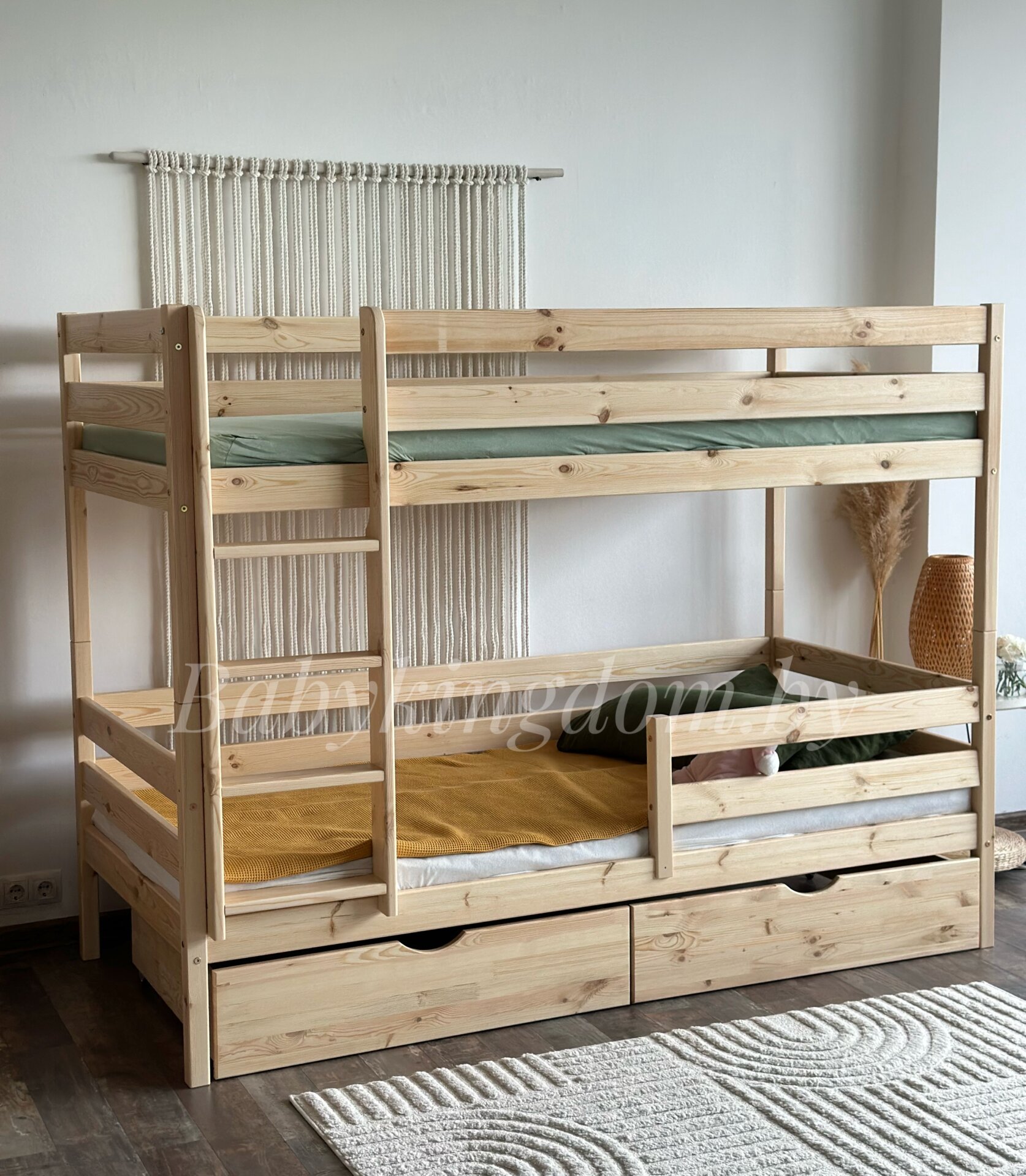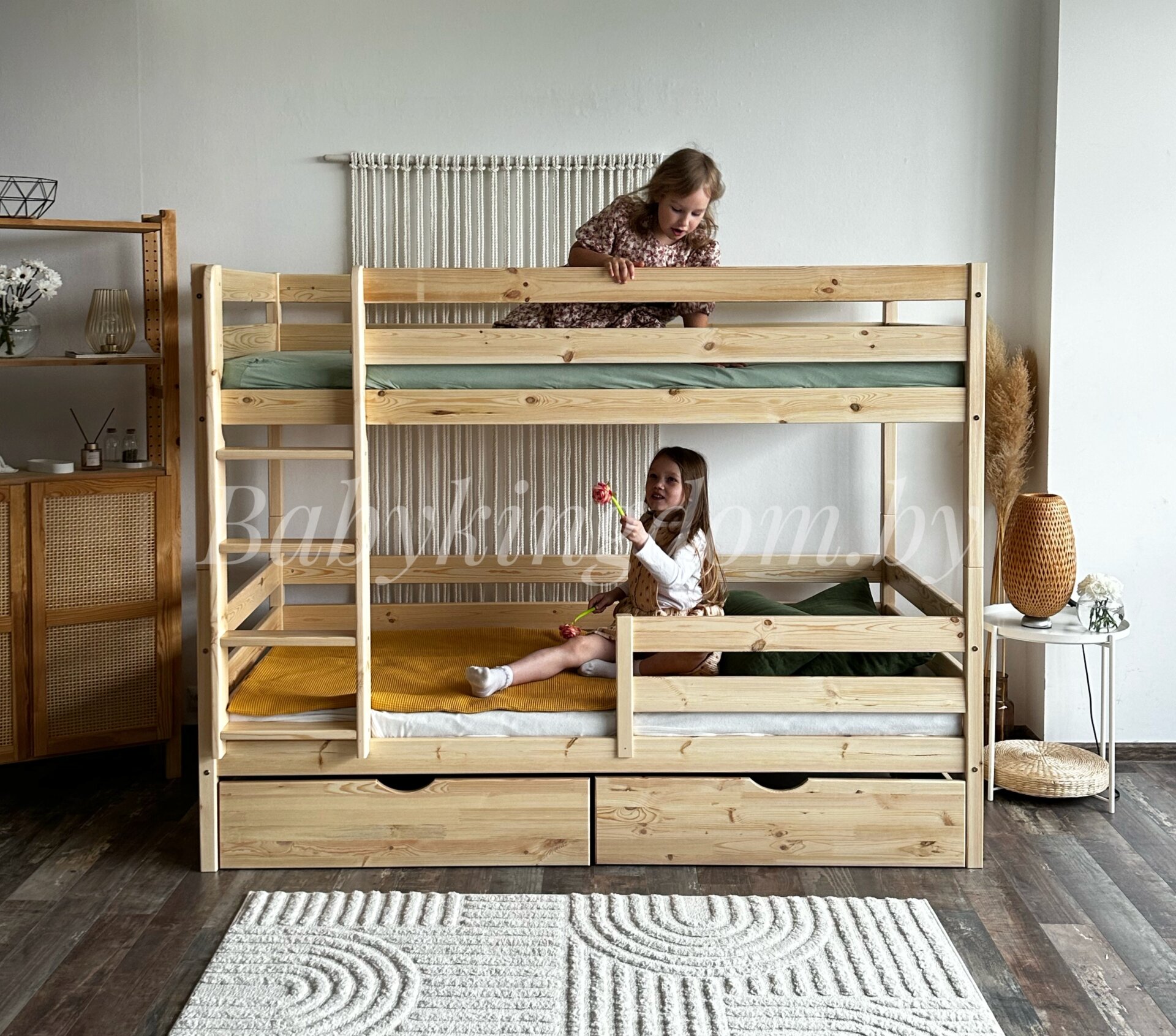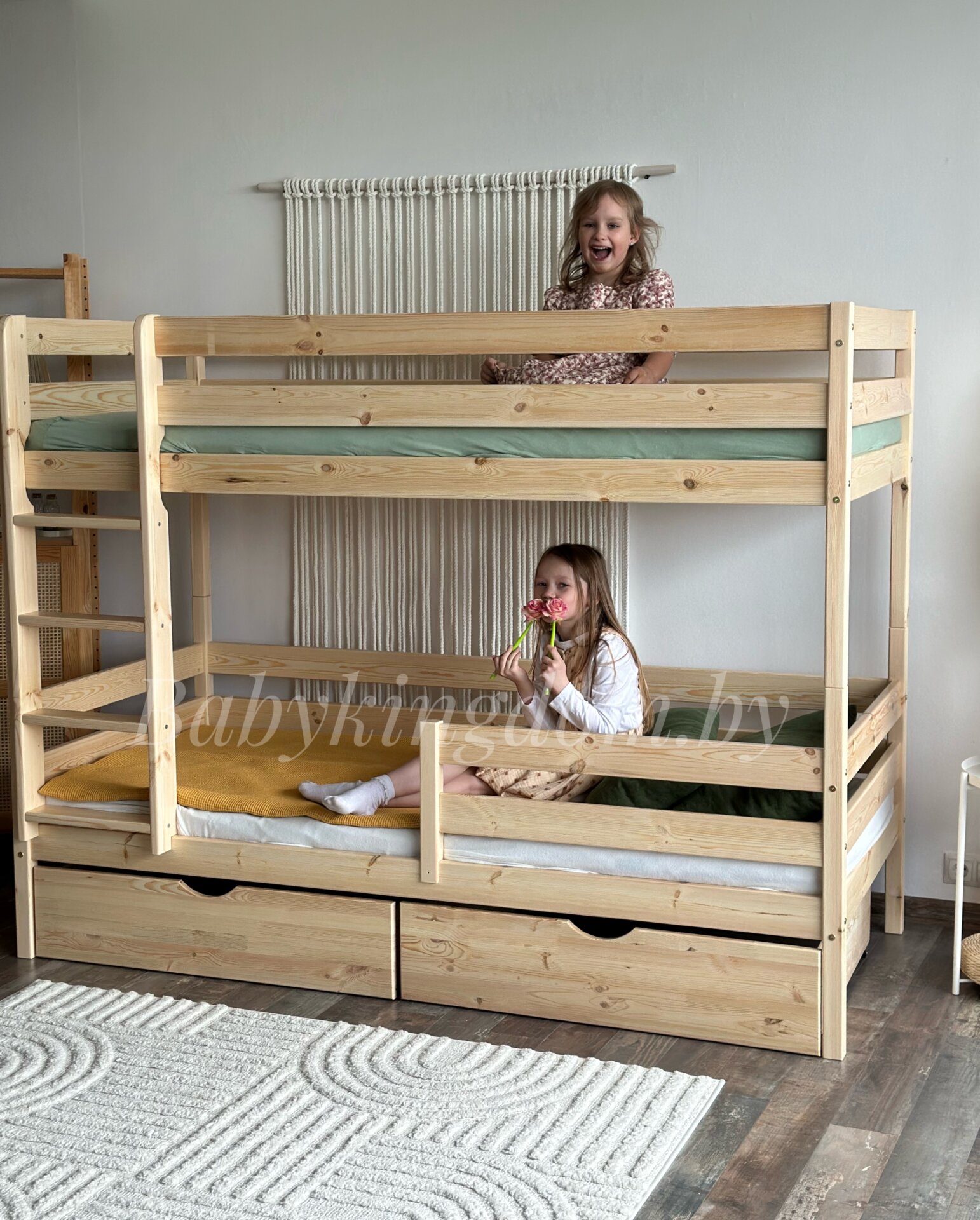 Двухъярусная кровать из массива сосны «Марта 2в1» с ящиками (лак)