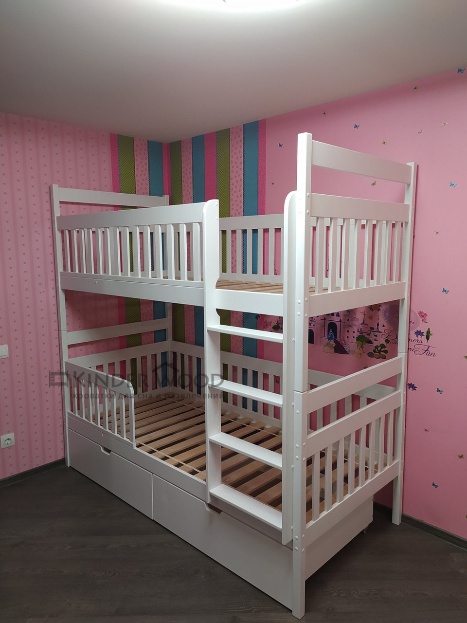 Двухъярусная кровать из массива сосны «Вуди-3» (белый)
