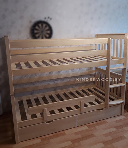 Двухъярусная кровать из массива сосны «Вуди-4» с ящиками, натуральный цвет (лак)