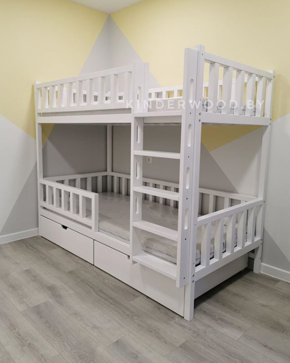 Двухъярусная кровать из массива сосны «Вуди-4» без ящиков (белый)
