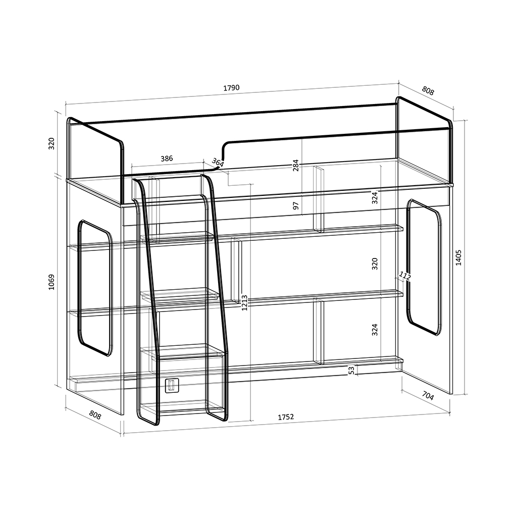 - Высота чердака всего 1405мм, что легко позволит взрослым наблюдать за ребенком на кровати или достать что-то с верхнего яруса.