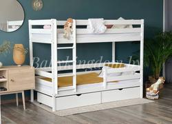 Двухъярусная кровать из массива сосны «Вуди-3» без ящиков (белый)